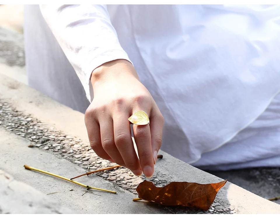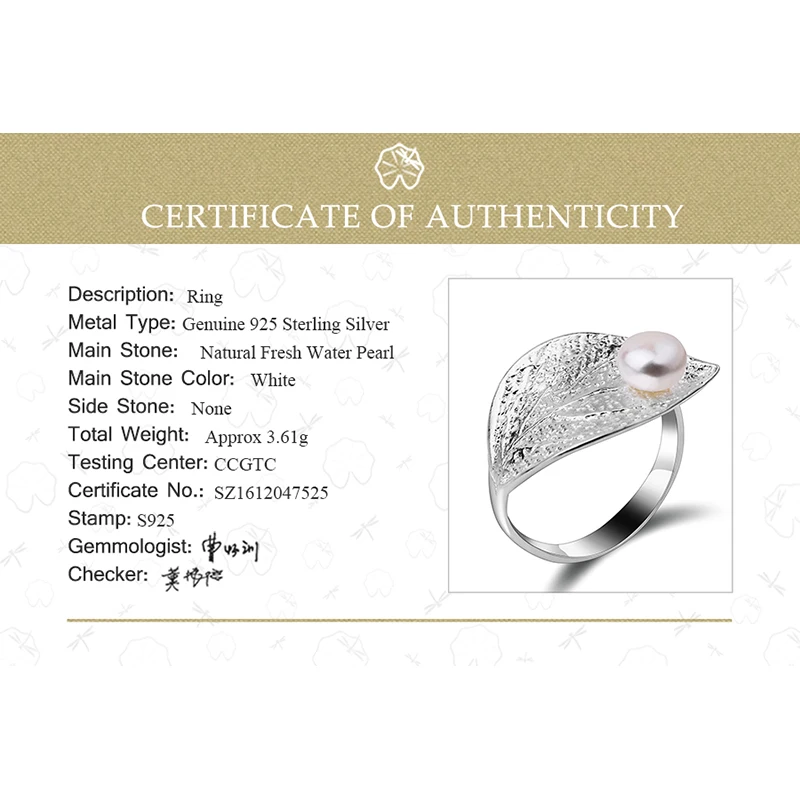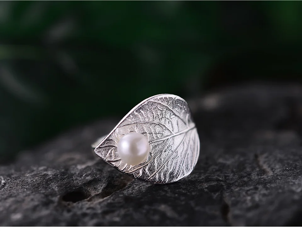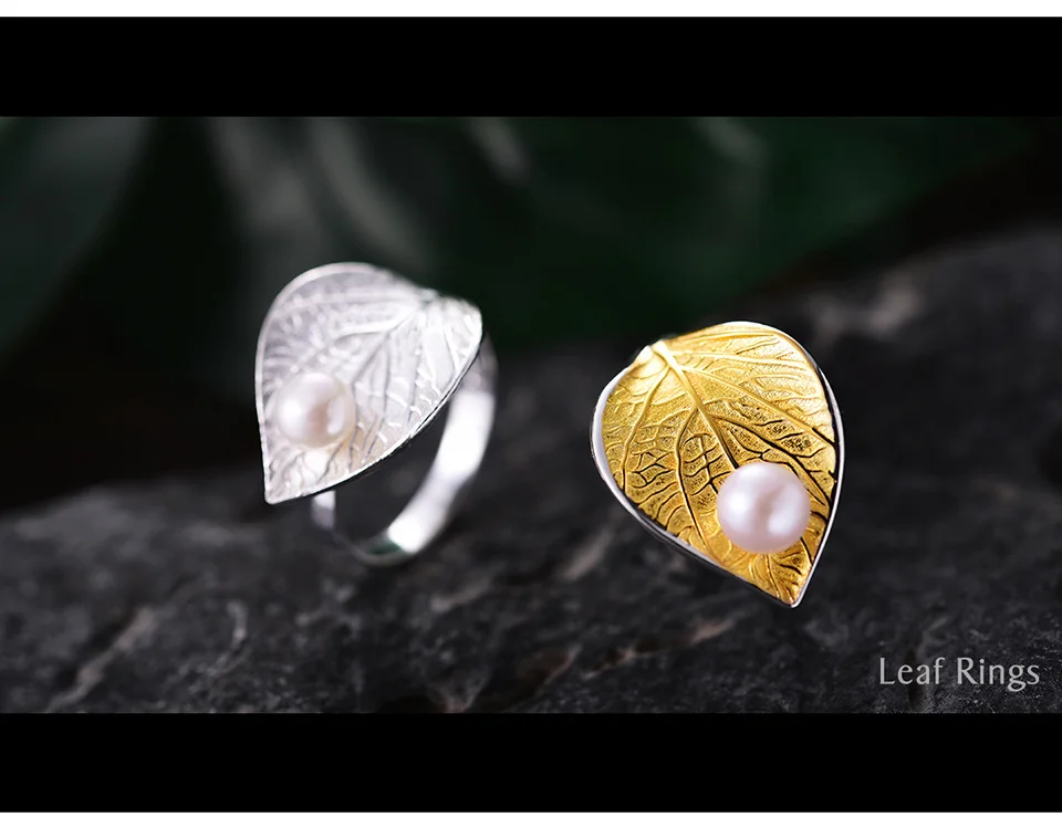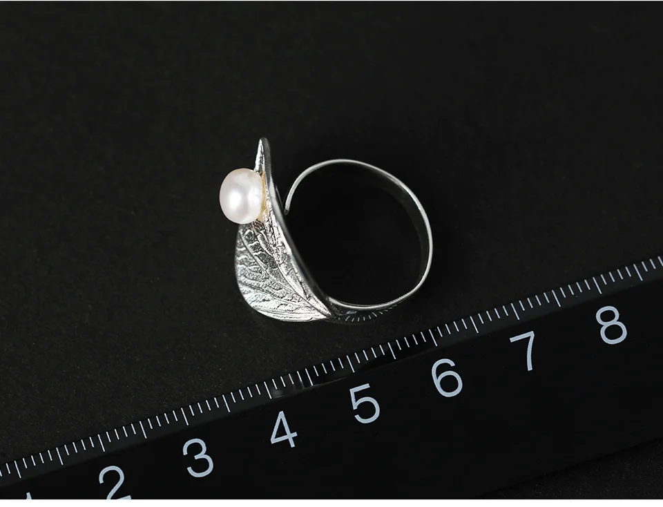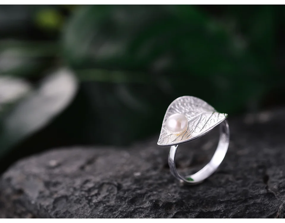 Lotus Fun Реальные Стерлингового Серебра 925 Натуральный Жемчуг Ручной Работы Дизайнера Ювелирных Украшений Творческий Открытым Кольцо Листьев Кольца для Женщин Bijoux