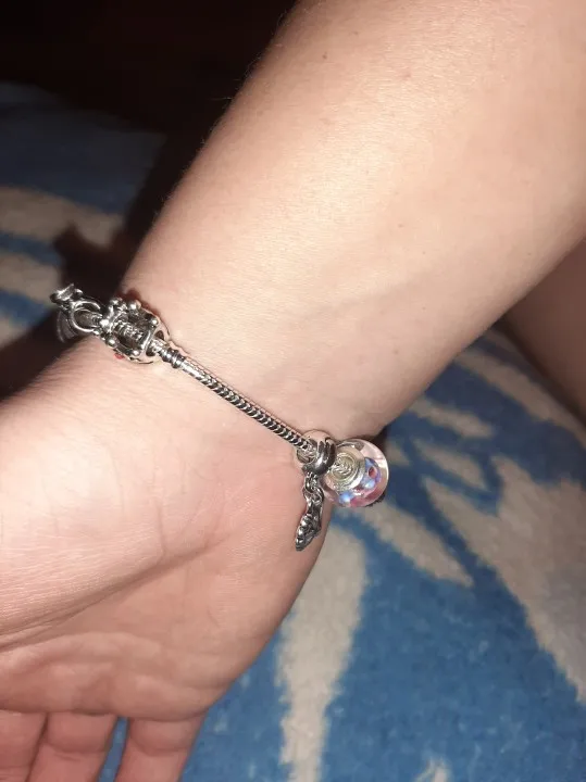 Посылка пришла очень быстро, всего за 11 дней, и сразу назначили русский трек для отслеживания, который начинается на RU и отслеживался как в Китае, так и в России. Браслет очень красивый, по весу такой тяжёленький. Размер на 20 самый большой, но на руке сидит плотно. Хотя шармы сидят не плотно на руке, и это даже хорошо перемешаются. В магазине такой раза в 2-3 дороже, а я купила примерно за 370 р. На креплении есть оттиск 925, но это всего оттиск и не более того. Если при постоянной носке очень долго не потемнеет, то это будет круто. Размер НЕ регулируется, но подойдёт даже девочке-подростку.