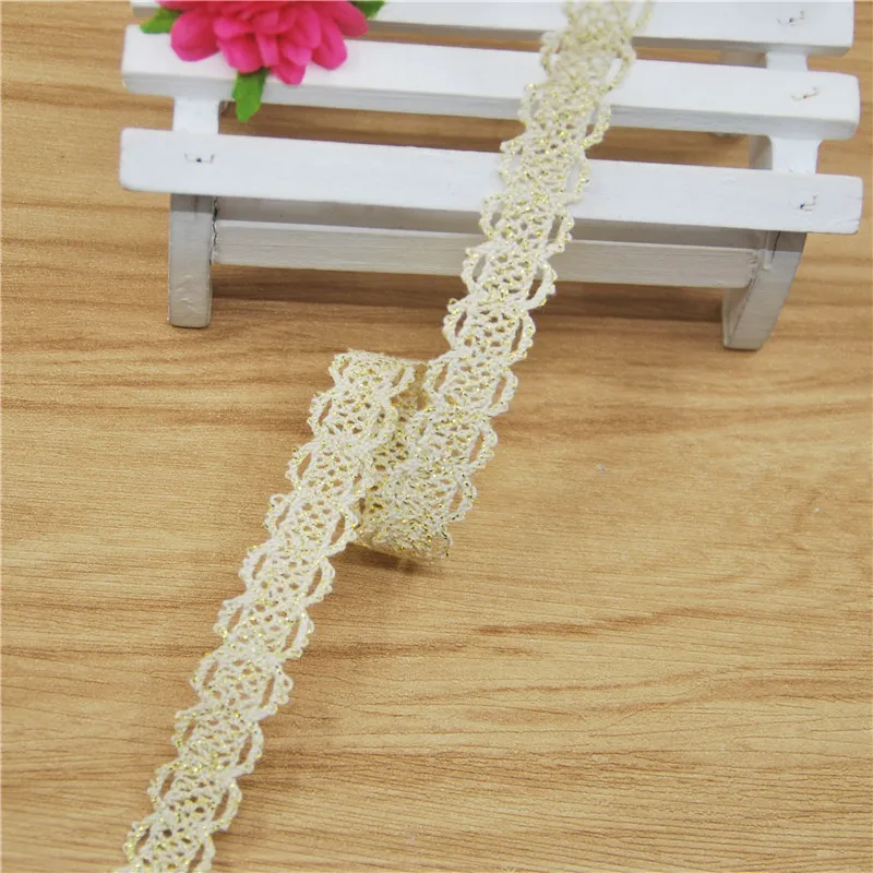 10 мм хлопок кружево отделка цвета слоновой кости золото Ткань Швейные аксессуары ткань свадебное платье украшение ленты ремесло поставки 50 ярдов LC025