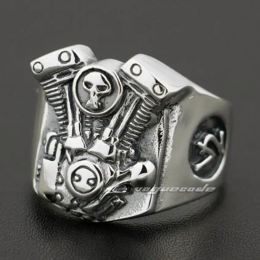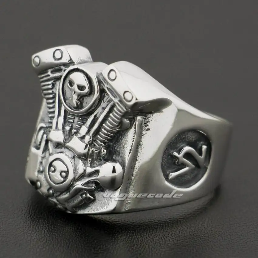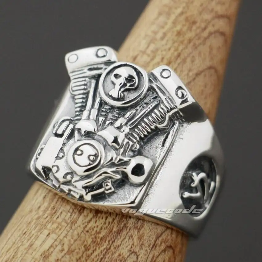 V2 череп двигатель мотоцикла 925 пробы Серебряное мужское байкерское кольцо 8Y009
