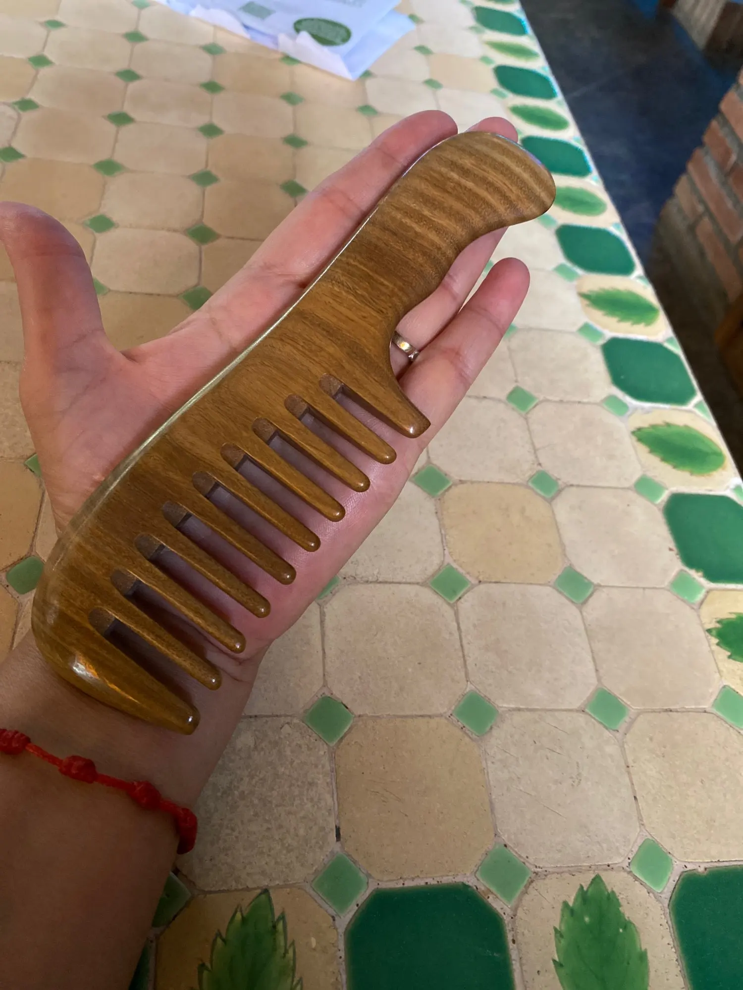 100% натуральные подлинные высококачественные гребни MINGJIANG JINGPIN из зеленого сандалового дерева ручной работы с широкими зубьями деревянные гребни для волнистых волос