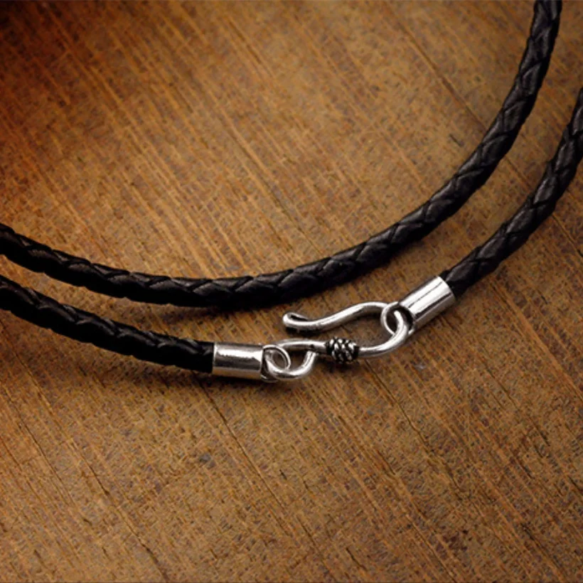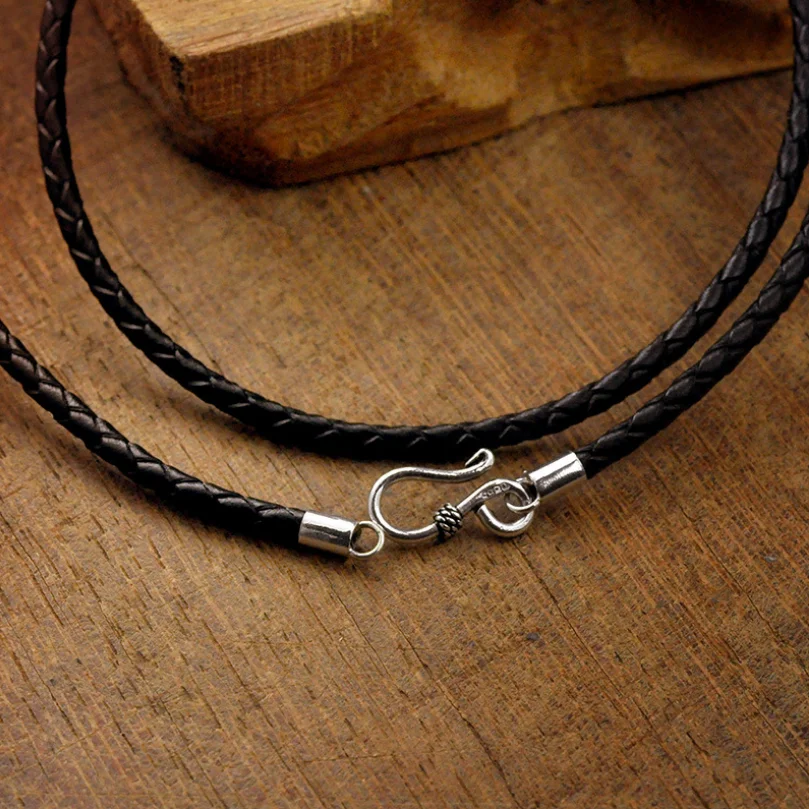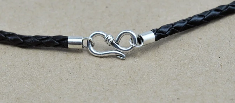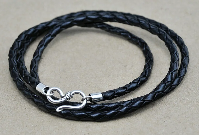 Ожерелье из чистого серебра S925 пробы с застежкой, плетеная кожаная Длинная цепочка с серебряным замком для мужчин, мужчин, женщин, ювелирные изделия, аксессуар