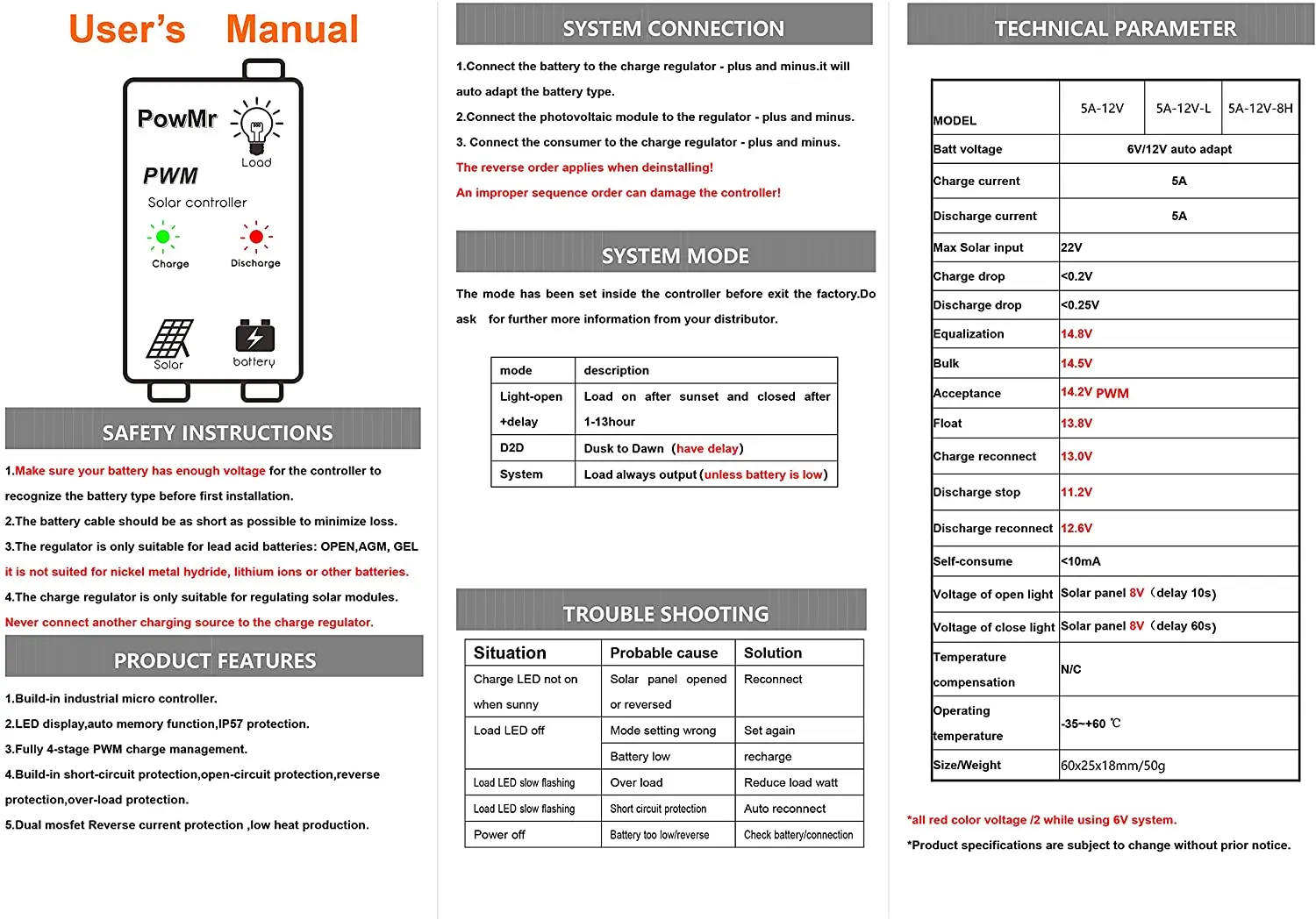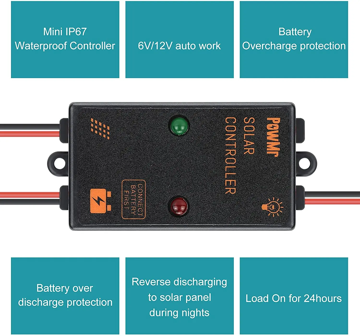 Водонепроницаемый Контроллер заряда IP67 для небольших солнечных батарей, миниатюрный Контроллер заряда солнечной батареи, работает 24 часа, 5 А, 12 В