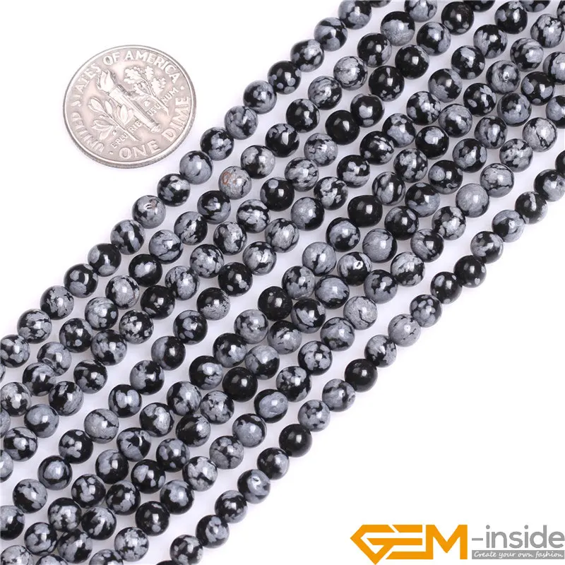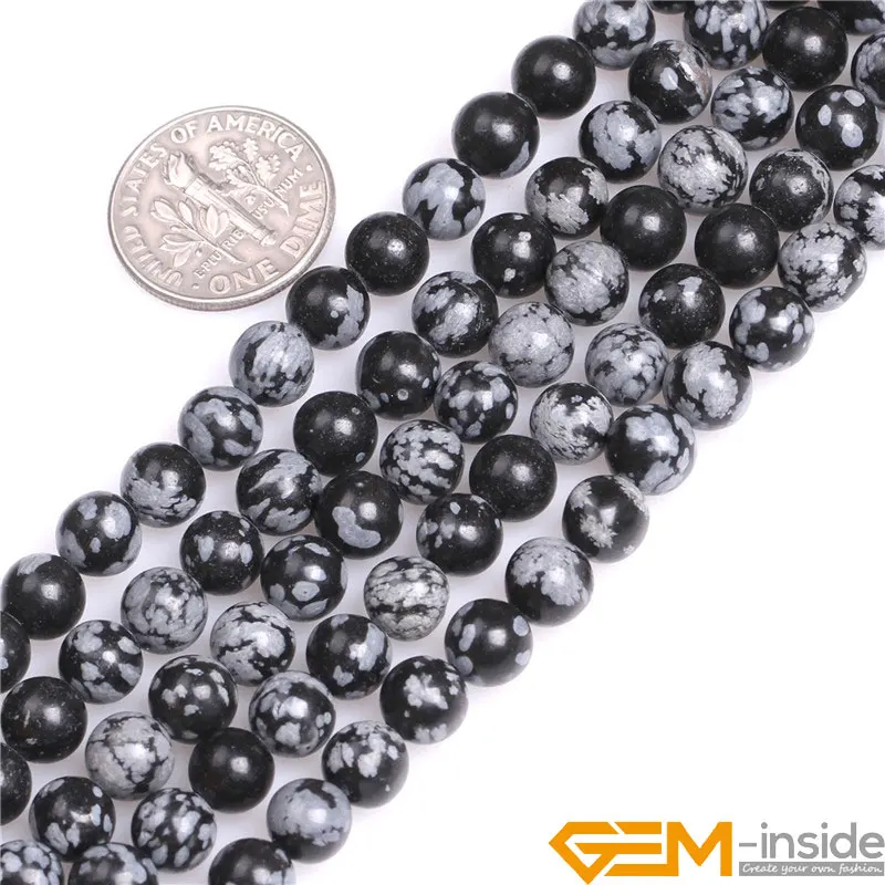 Круглый бисер из натурального камня в виде снежинок, обсидиан, для изготовления ювелирных изделий, нитка 15 дюймов, бисер для изготовления ожерелий, 6 мм 8 мм 10 мм 12 м