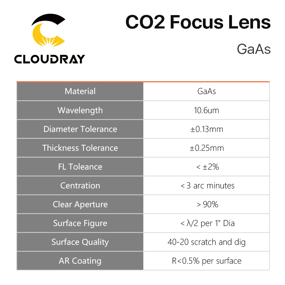 Фокусные линзы диаметром Cloudray GaAs Высококачественная машина для лазерной гравировки, 19,0520 мм FL 50,8 63,5 101,6 мм 1,5-4 "CO2