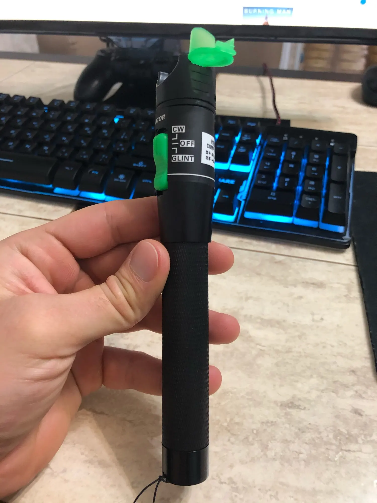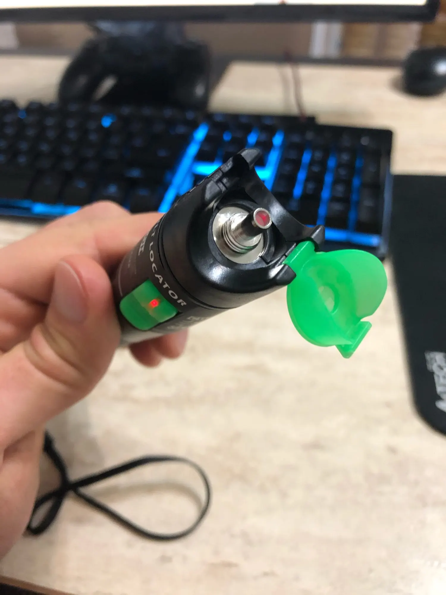 заказ прибыл очень быстро,указка рабочая, светит в кабель хорошо