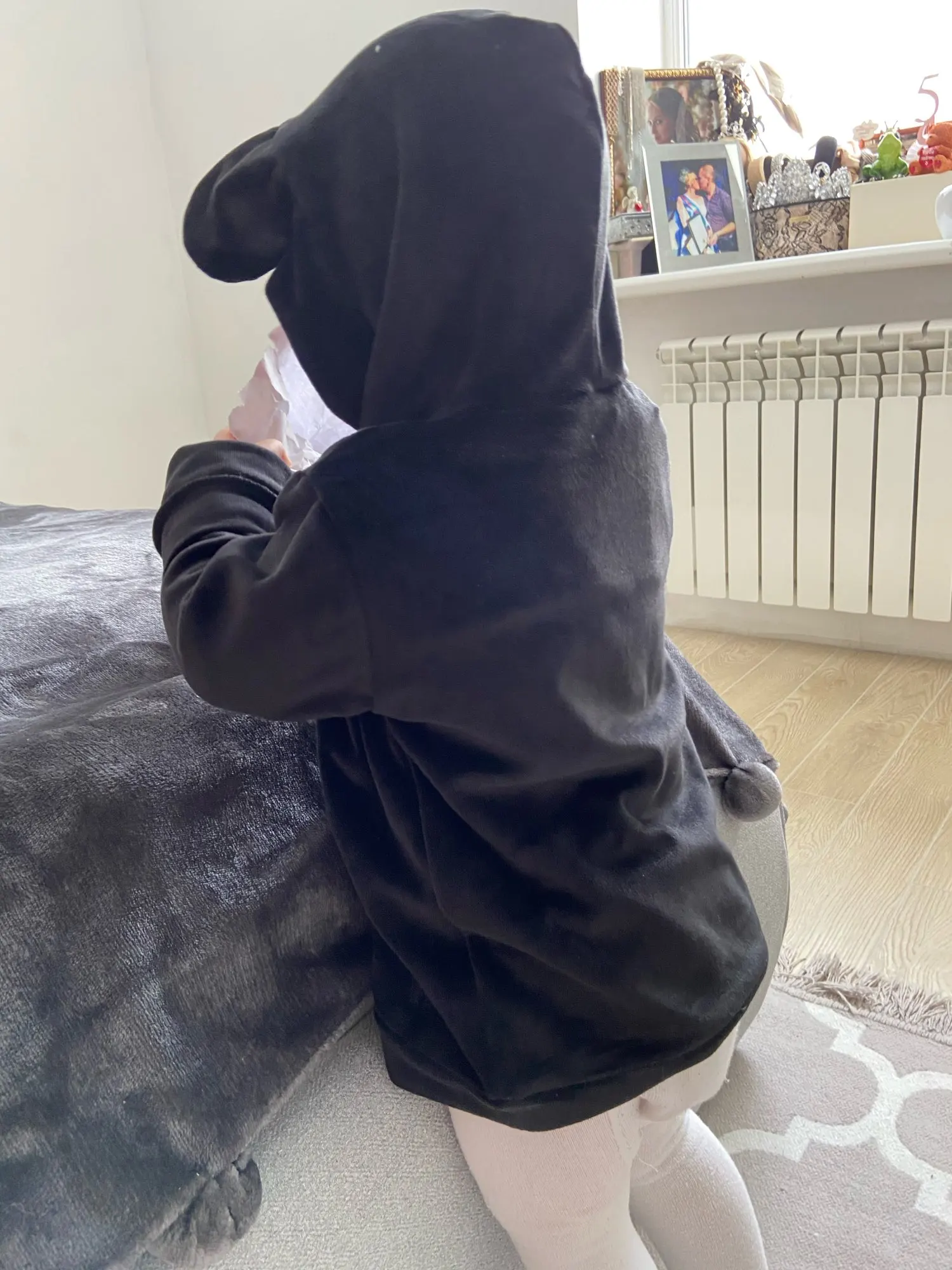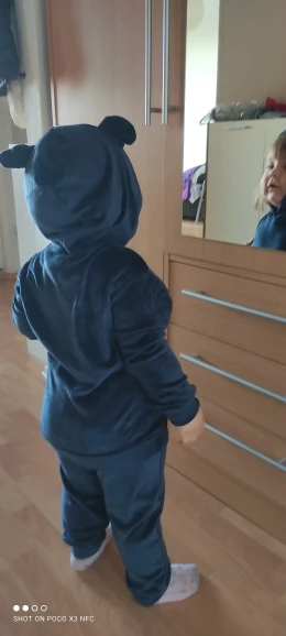 Костюм супер плюшевый, очень красивый и приятный. Без запаха, без ниток. На рост 98 чуть велик