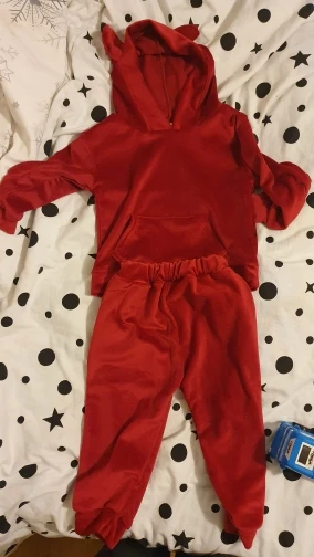 zgony z opisem, bardzo dobrze uszyty, szczerze polecam! Rozmiar 130 na metce bluzy to takie 116-122 polskie, spodnie troszkę większe. Sugerowalam się wiekiem dziecka i tak należy zamawiać.