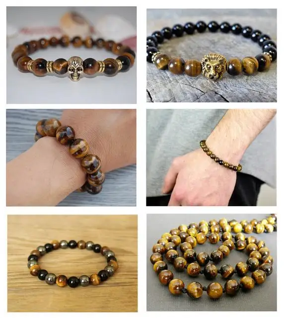 Натуральный черный обсидиан гематит тигровый глаз бусы браслеты для...
