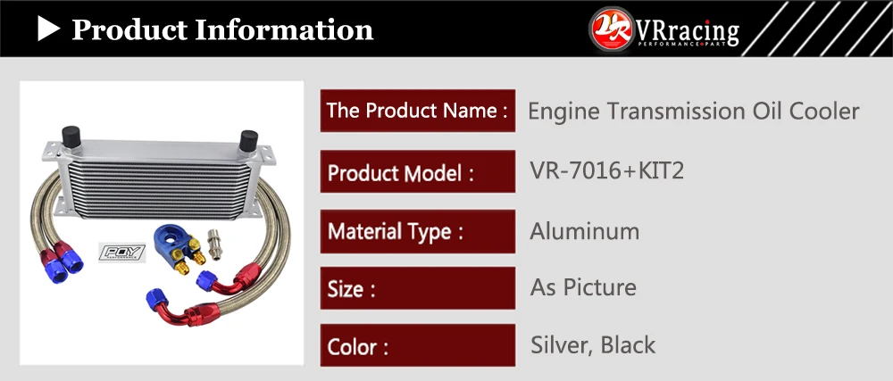 VR RACING-AN10 набор масляных охладителей 16 рядов+ Масляный фильтрАдаптер+ Плетеный шланг из нержавеющей стали с наклейкой PQY и коробкой VR7016+ KIT2