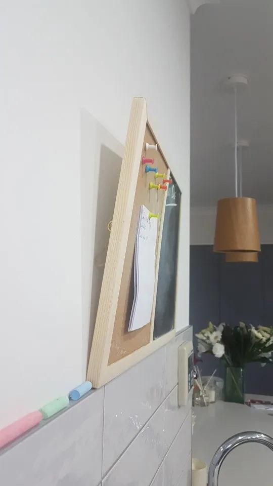 Хорошая досочка, аккуратная, жаль нет подставки под мелки, пришлось прикалывать пакетик к доске чтобы они были рядом с доской