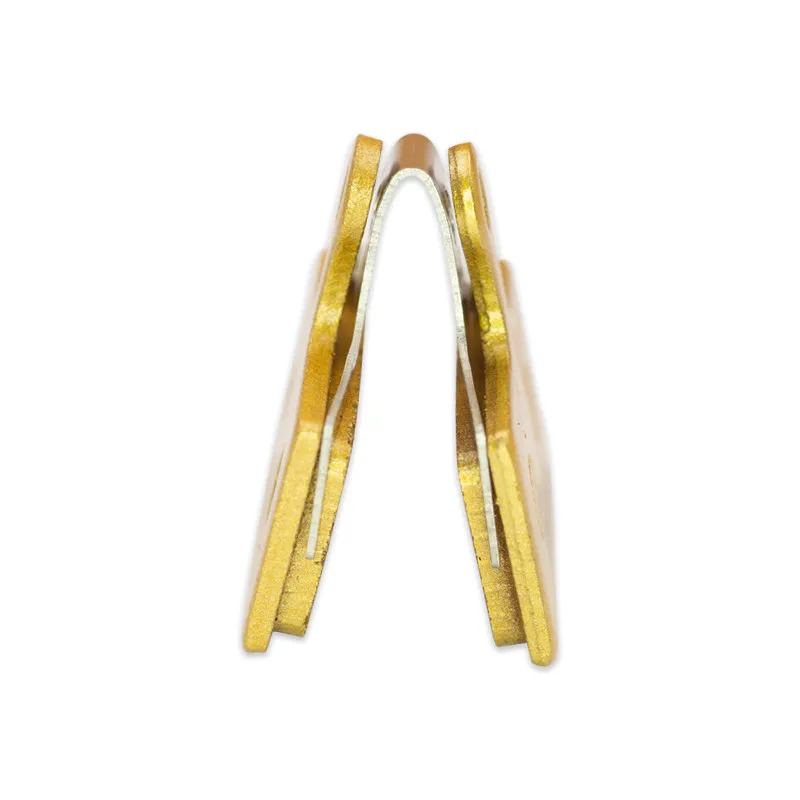 Формула Золотого Металла, более гладкое ощущение торможения.Все погодные условия.Отличное тепловыделение, длительный срок службы. Гораздо лучше, чем органические Полу-металлические прокладки.Такая же мощность тормозов, как и оригинальные подушечки!