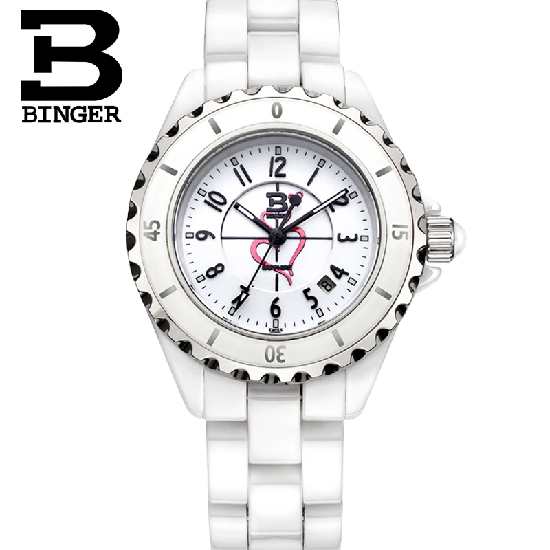 Керамические женские кварцевые часы BINGER, повседневные, водонепро...