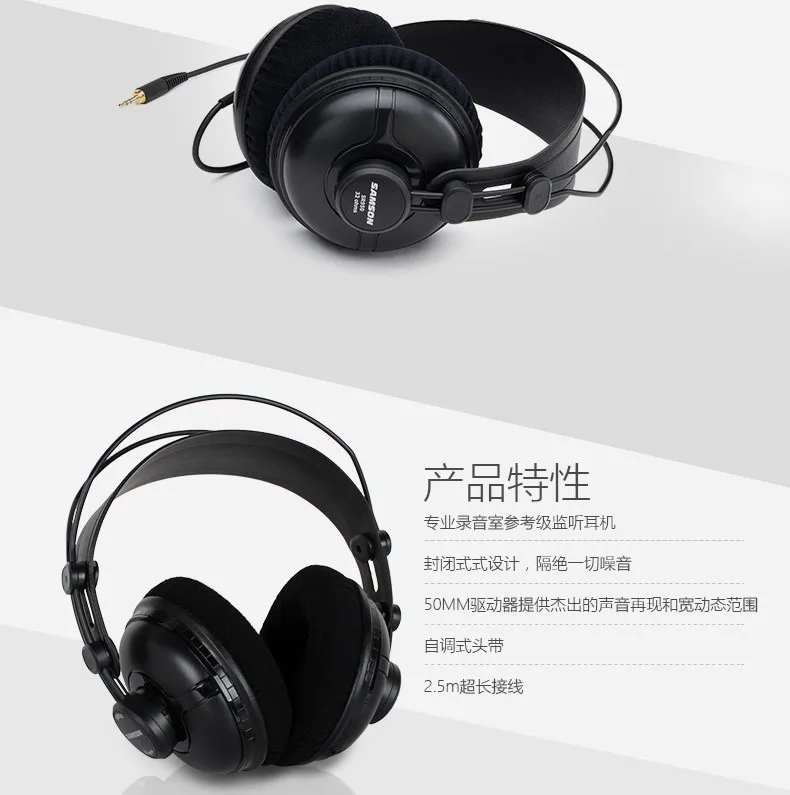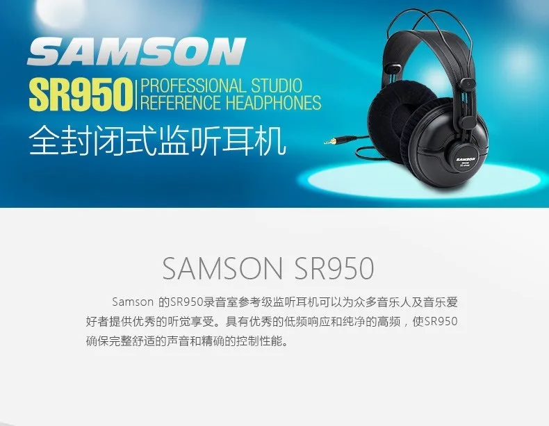 Оригинальные профессиональные наушники Samson SR950, полностью закрытые студийные наушники для диджея с бархатными амбушюрами