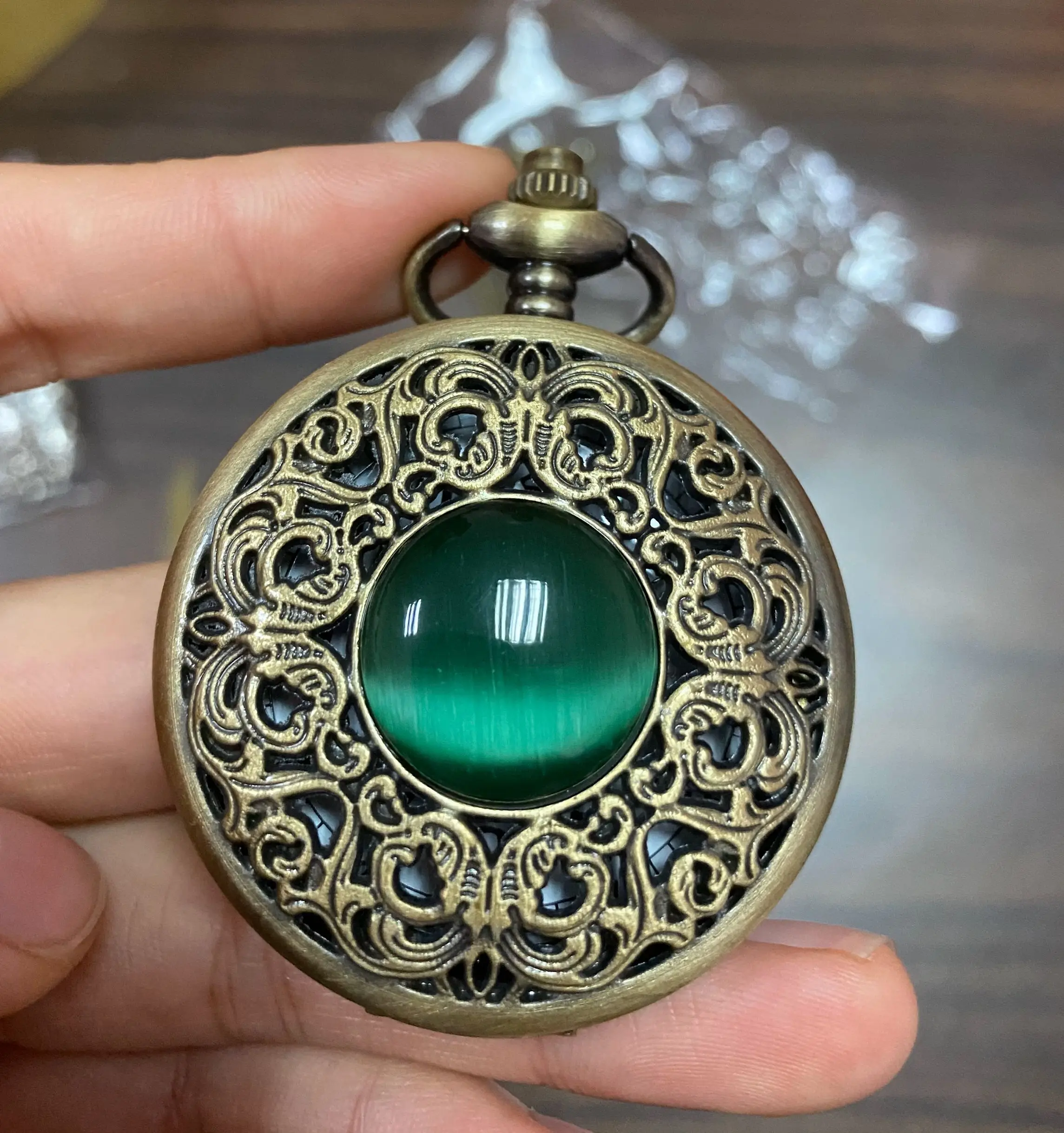 Колье с подвеской из искусственного нефрита, карманные часы с имитацией камня, украшение с изумрудами, подарок для мужчин и женщин