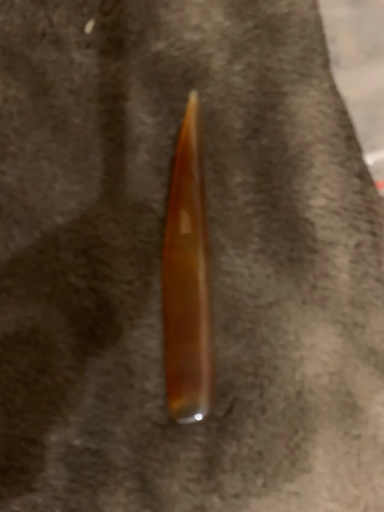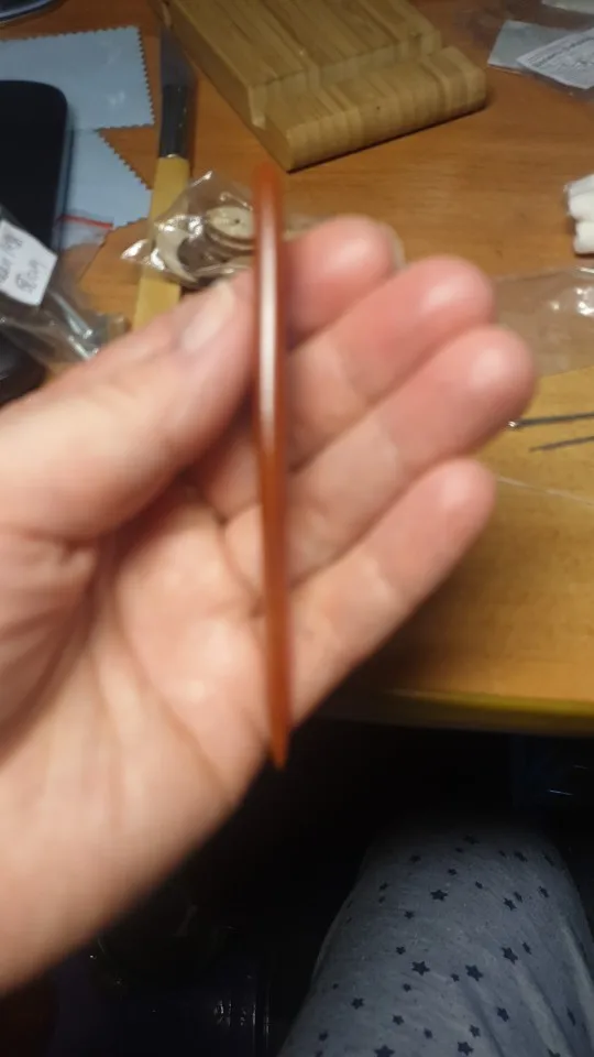 Есть сомнения в натуральности агата. Заказывала подобный нож в другом магазине и ощущения камня там присутствовало:он был тяжелый и прохладный. Здесь же материал подозрительно быстро нагревается(в руке) и сохраняет тепло довольно долго,что не характерно для натурального камня, особенно с учетом температуры +3 вокруг(дело было на улице).