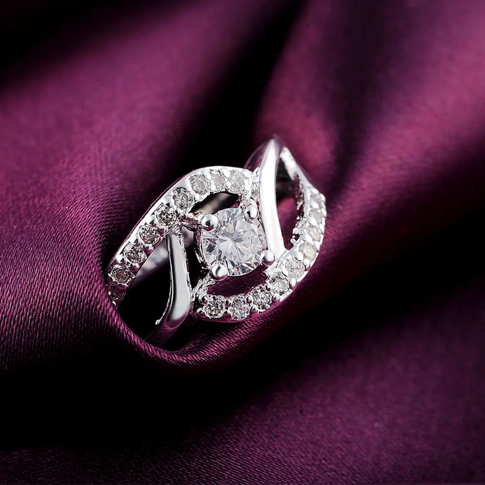 Кольцо женское, серебристое, свадебное, R142, фианит, циркон, кристалл