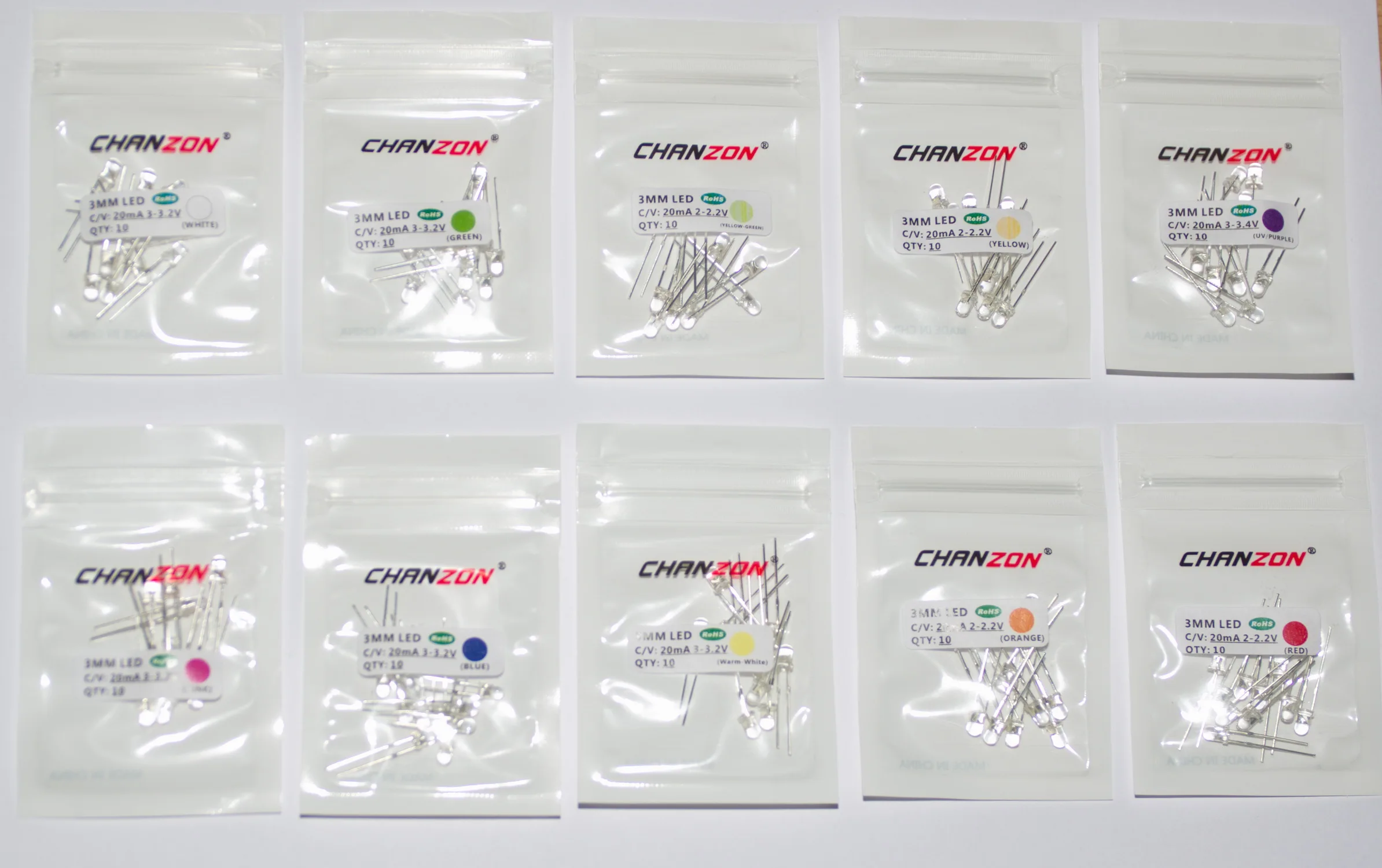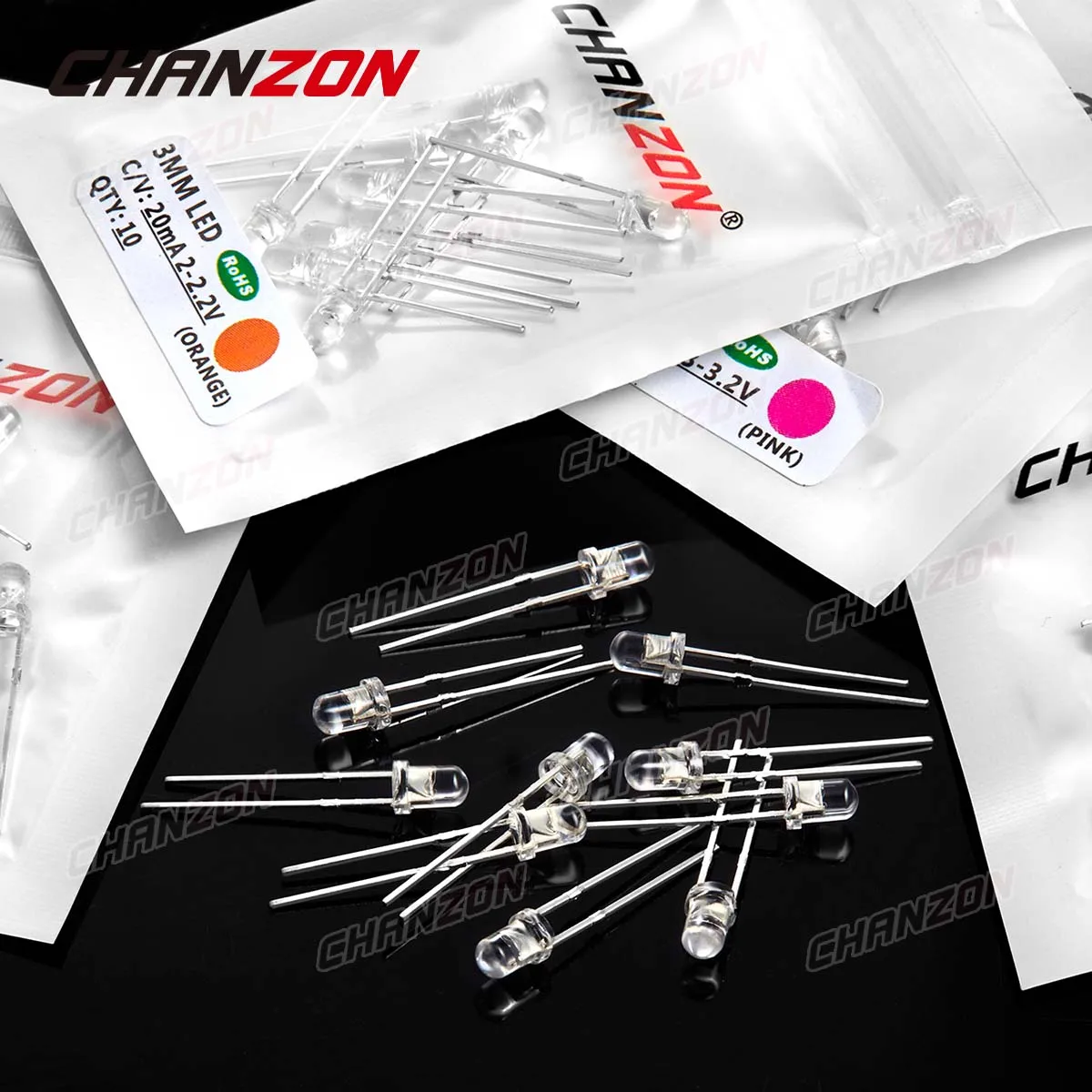 Набор светодиодных диодов, 100 шт., 3 мм, теплый белый, красный, синий, зеленый, УФ, оранжевый, желтый, розовый цвет, набор ламп, 2 В, 3 в, ассортимент печатных плат