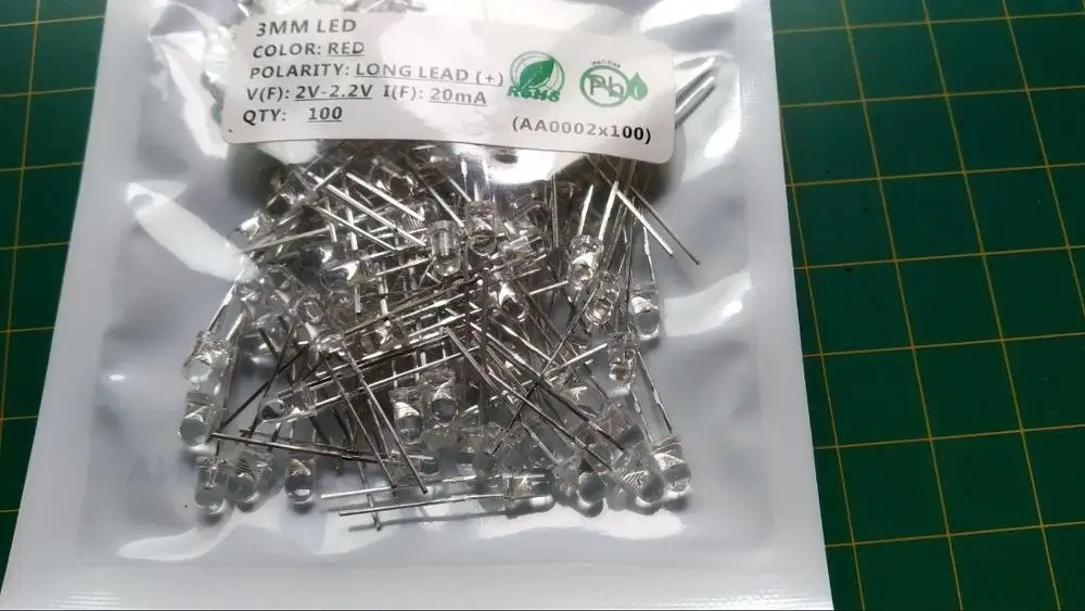Доставка довольно длительная и заняла она 61 день. Это очень долго! Посылку прислали почтой Китая и трекинг отслеживался до получения посылки на почте. Покупку прислали в жёлтом бумажном почтовом пакете с пупырчатой плёнкой внутри, и она дошла без повреждений. Маленькие пакетики со светодиодами находились в большом фирменном самозакрывающемся пакете. Всего 10 пакетиков по 10 светодиодов в каждом. Общее количество светодиодов 100 штук. Напряжения и цвета соответствуют заявленным. Диаметр светодиодов 3 мм. Спасибо продавцу за качественный товар по хорошей цене.