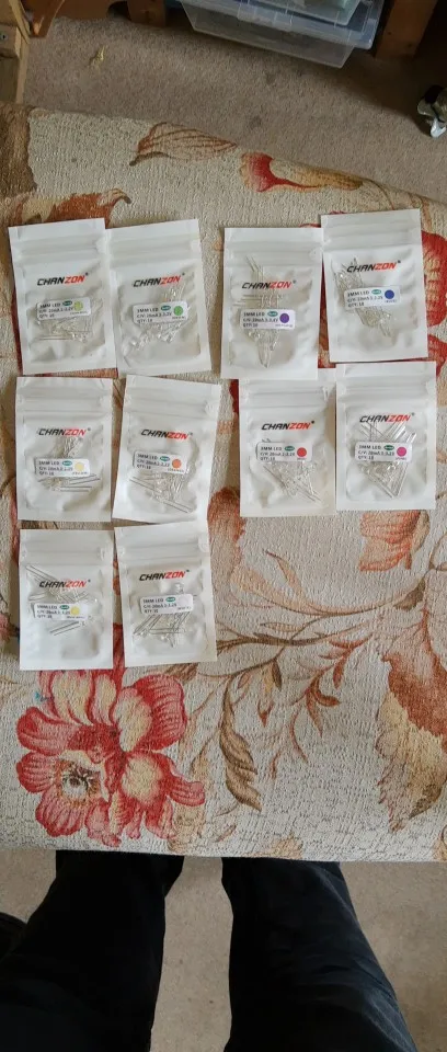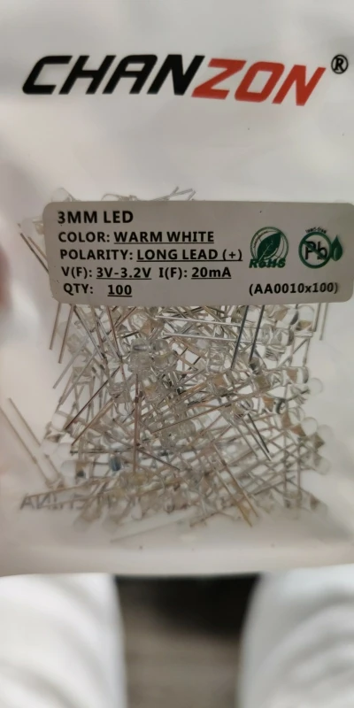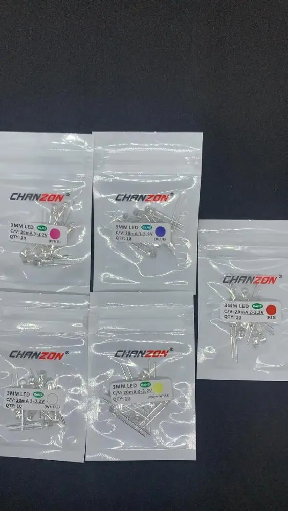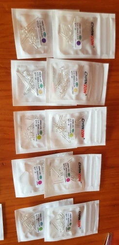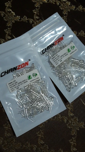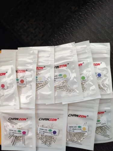INCREIBLE CALIDAD, NO SE PUEDE MEJORAR MÁS. VIENEN EN BOLSITAS DE 10 LEDS POR COLOR, Y MUY DETALLADO CON SU INFORMACIÓN, SUS COLORES Y SU VOLTAJE. RECOMIENDO 100% AL VENDEDOR. EL ENVÍO HA TARDADO DOS SEMANAS, TODO PERFECTO. NOTA: MIRAR BIEN SUS VOLTAJES, FUNDÍ DOS LED ROJOS SIN DARME CUENTA DEL VOLTAJE QUE NECESITABA, Y ESO QUE LO PROBÉ CON MI BATERÍA DE 3.7 VOLTIOS, PERO LA LUMINOSIDAD CON TAN SOLO 2.2 VOLTIOS ES ALUCINANTE. INCREDIBLE QUALITY, CAN'T BE BETTER MORE. THEY COME IN BAGS OF 10 LEDS PER COLOR, AND VERY DETAILED WITH YOUR INFORMATION, THEIR COLORS AND THEIR VOLTAGE. I RECOMMEND 100% TO THE SELLER. DELIVERY HAS TAKEN TWO WEEKS, ALL PERFECT. NOTE: LOOK AT THEIR VOLTAGES, I CASTED TWO RED LEDS WITHOUT REALIZING THE VOLTAGE I NEEDED, AND I TESTED IT WITH MY 3.7 VOLT BATTERY, BUT THE BRIGHTNESS WITH ONLY 2.2 VOLTS IS AWESOME.