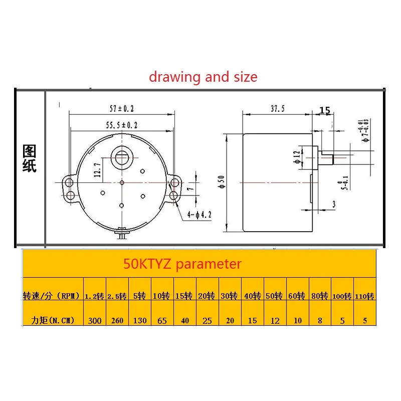 Новый синхронный двигатель 50KTYZ 220VAC, Вал D с отверстием (по умолчанию, если у вас есть другие требования, пожалуйста, оставьте сообщение в заказе)