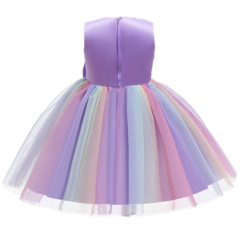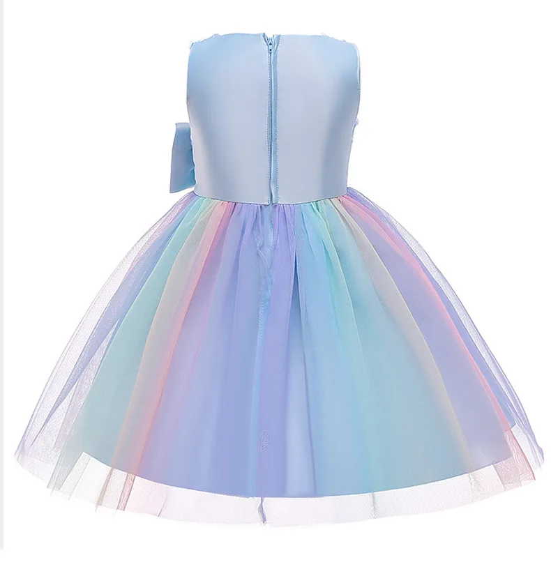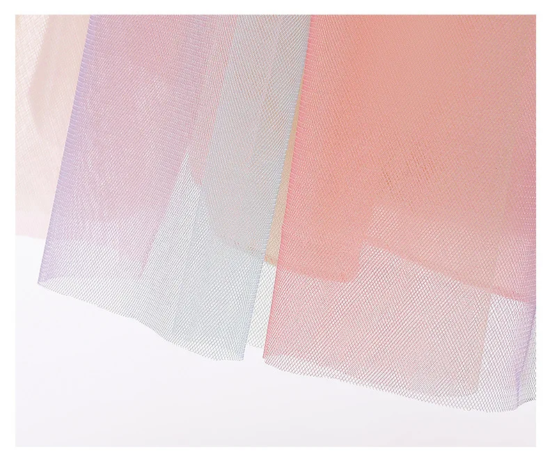 Платье соответствует описанию. Есть необработанные участки, немного торчащих ниток. Платье красивое. Низ платья из трёх слоёв: радужная сетка, белая сетка, подкладочная ткань. Дочка очень довольна. Платье красивое.
