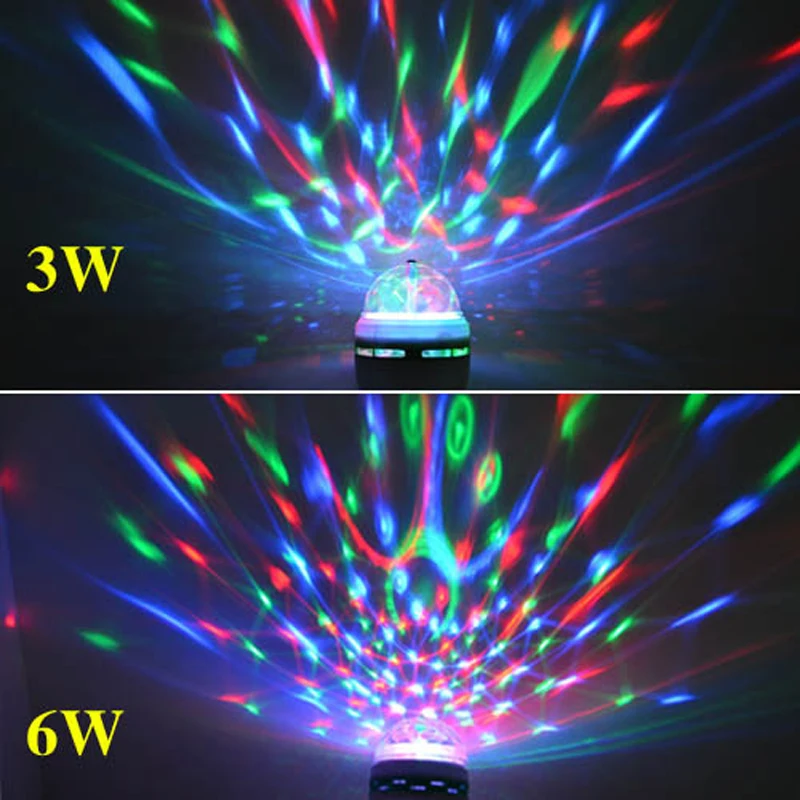 1 шт. E27 3 Вт 6 Вт RGB цветомузыкальная светодиотная лампа для празника автоматически крутится AC85V-265V лампочка для освещения дискотеки DJ бара вечеринки танца Рождестава