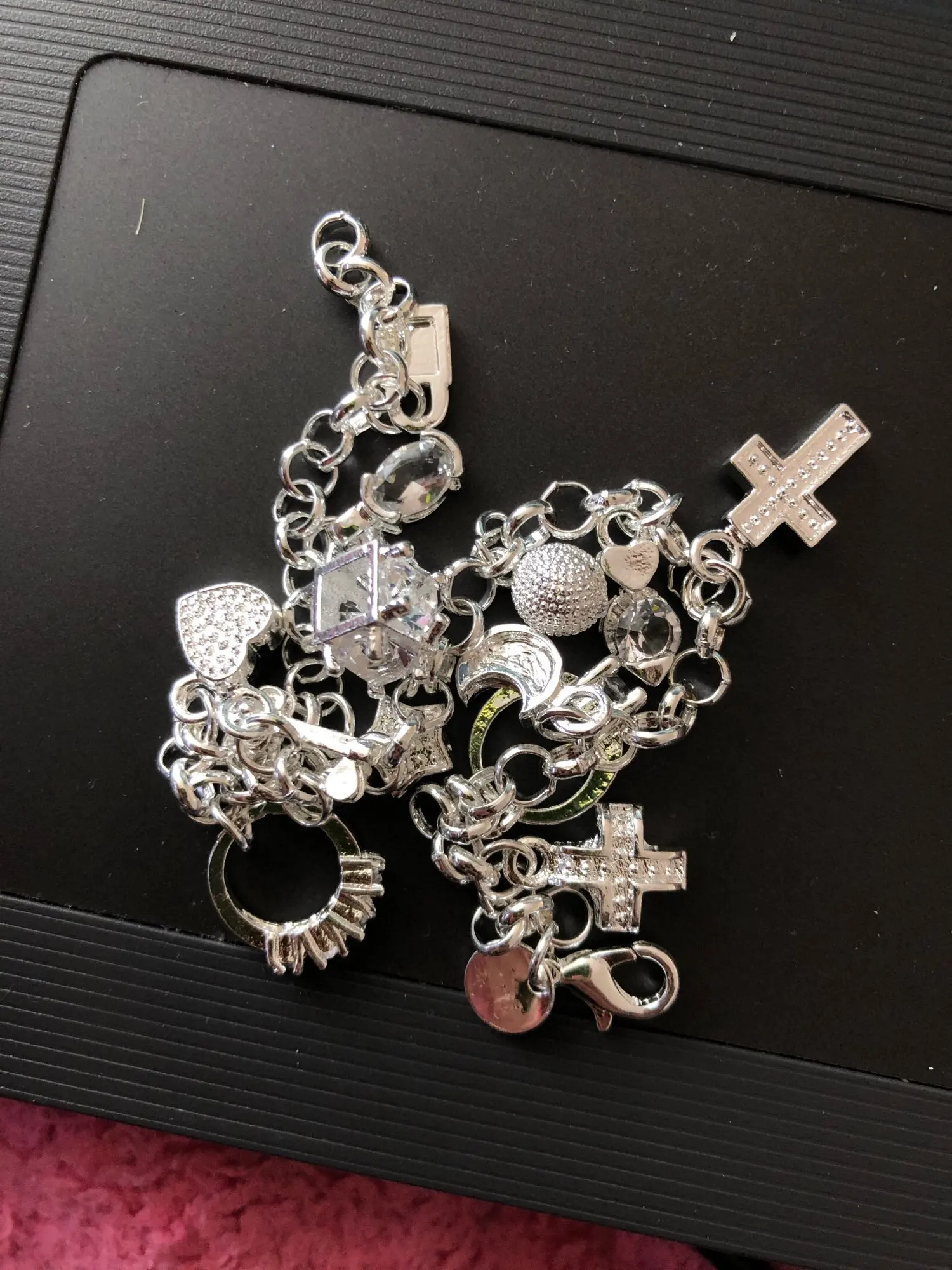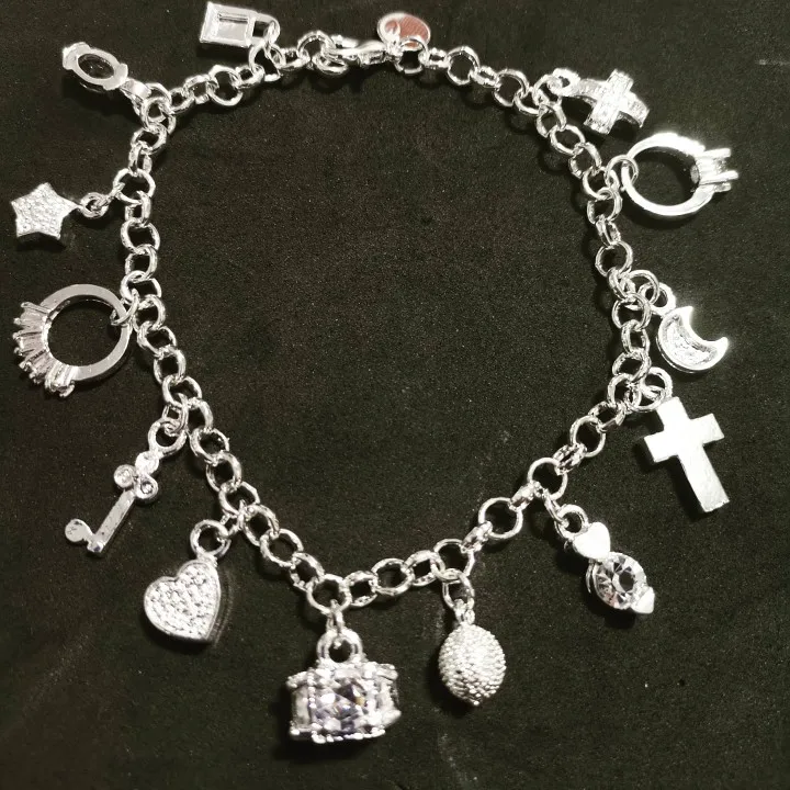 Шарм-подвеска из стерлингового серебра 100% пробы, женский браслет, красивый крест, Луна, сердце, Часы, кулон, ювелирные изделия