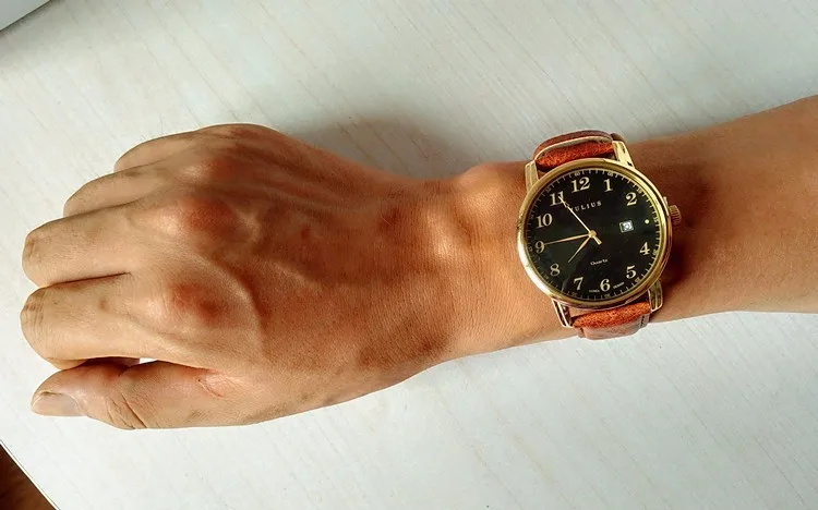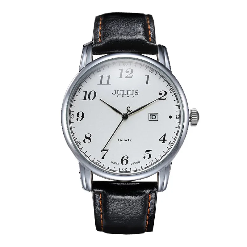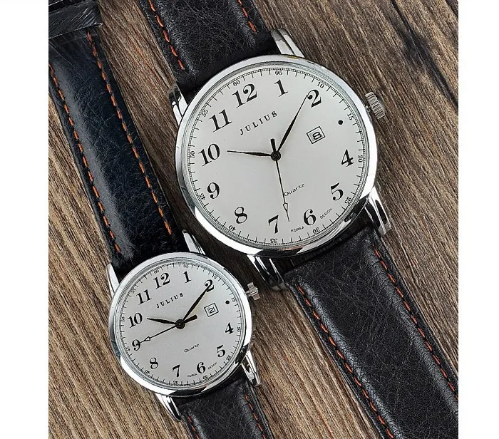 Часы наручные Julius мужские в ретро стиле, модные большие с автоматической датой, с кожаным ремешком, подарок на день рождения для школьника, без коробки