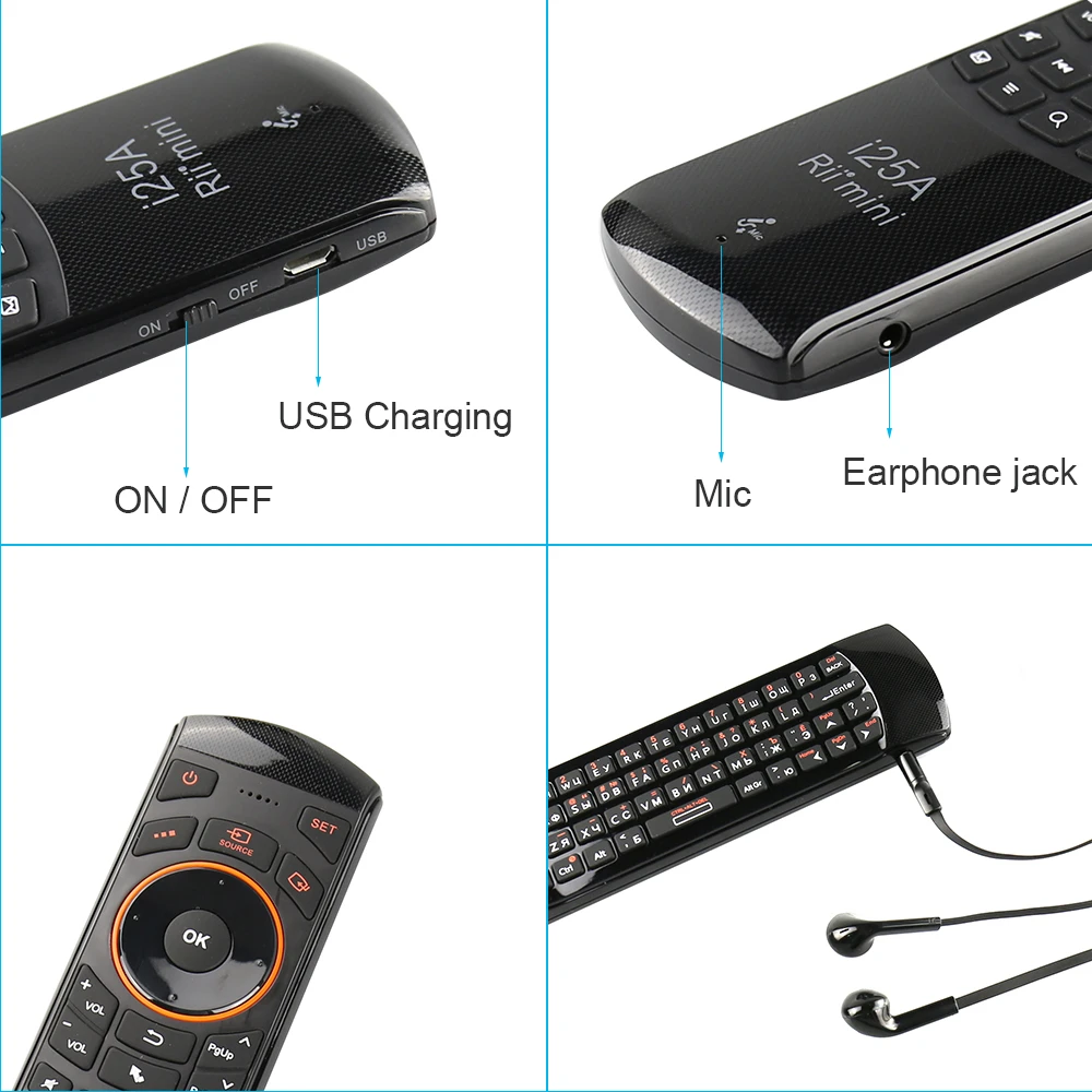 I25A: мини-клавиатура + летучая мышь + ИК-пульт дистанционного управления + микрофон + разъем для наушников