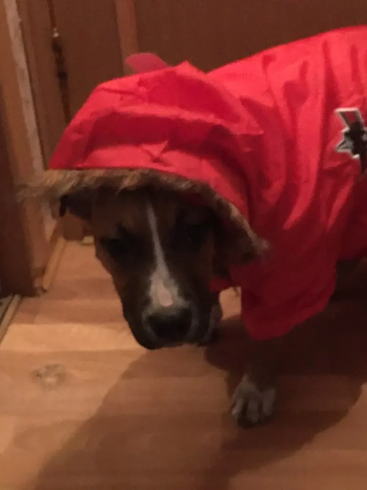 Отличное качество, очень плотный и теплый. Моя собака 52 фунта, а Крупный рогатый скот подходит ей, но я могу использовать на размер больше. Я бы купил это снова отличная покупка!
