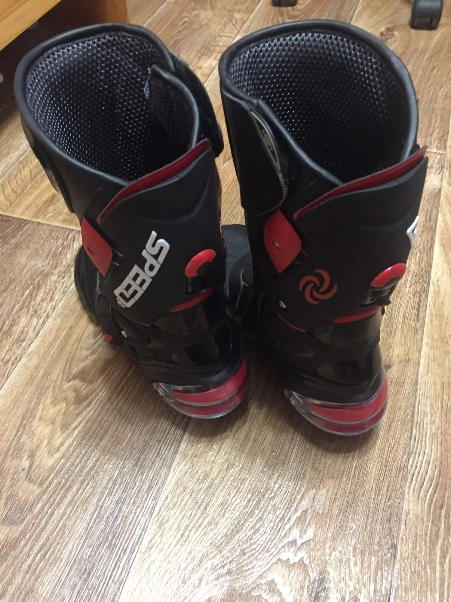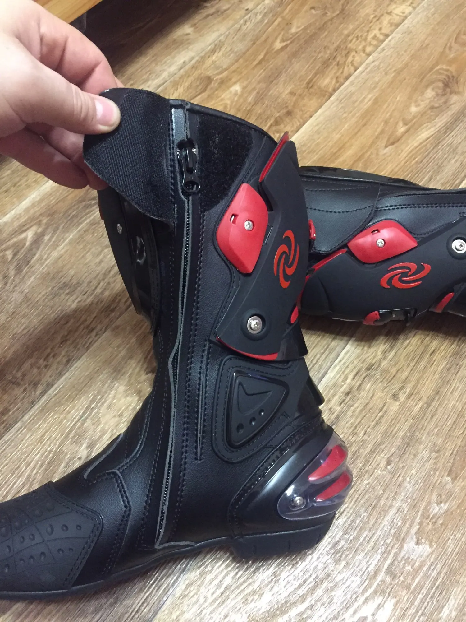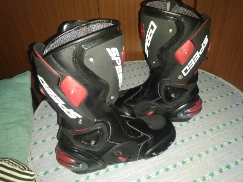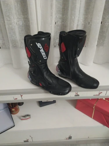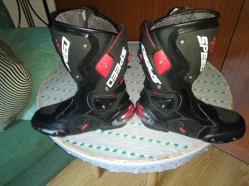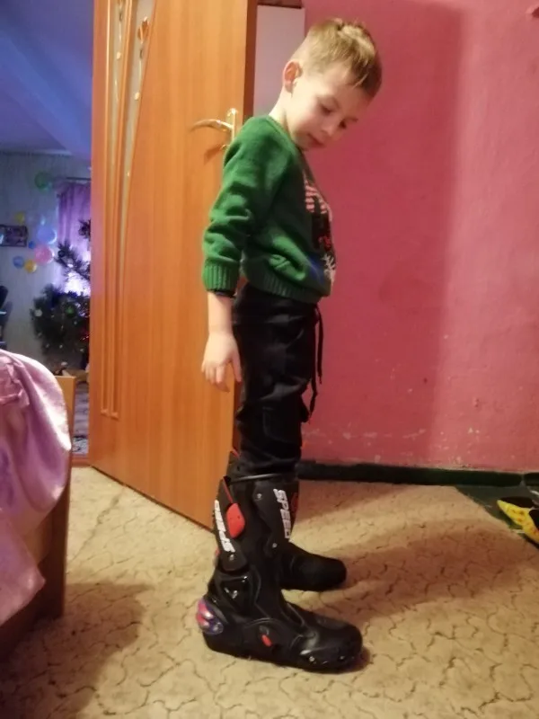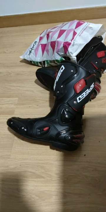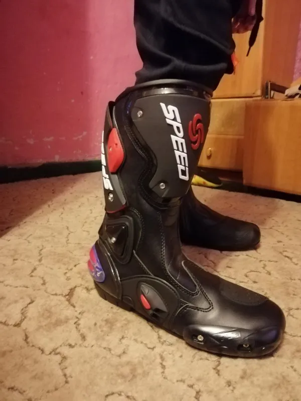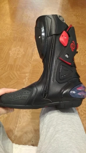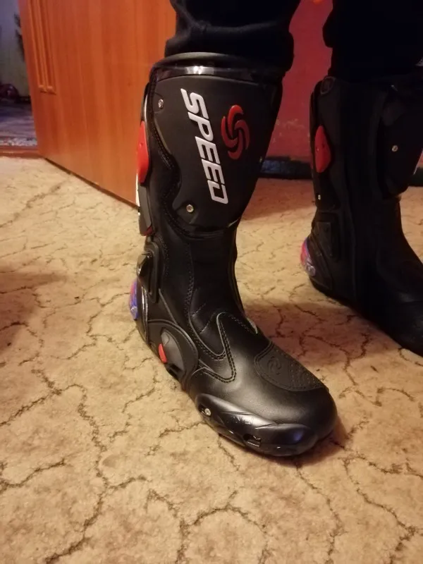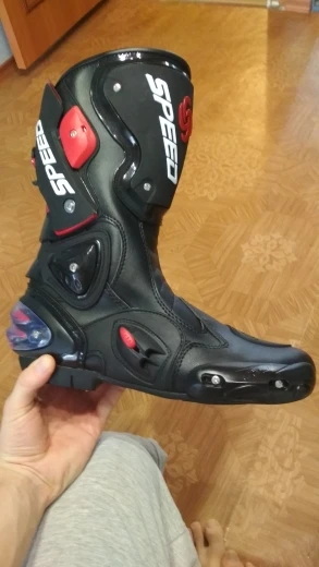 пришли в Москву за 15 дней, качество защиты среднее(пластмасс не огонь) сами ботинки из кожзама приблизительно 2,5мм, ошибся с размером, подложу стельки. Купил за 6450 у нас такие от 10000, катать в городе пойдёт, не для трека.