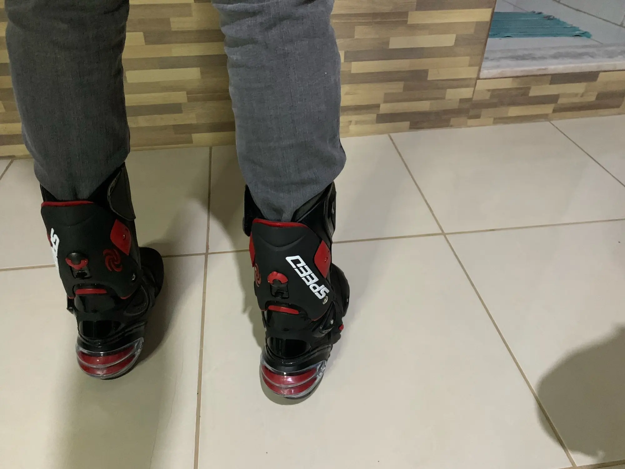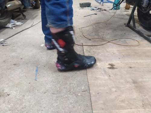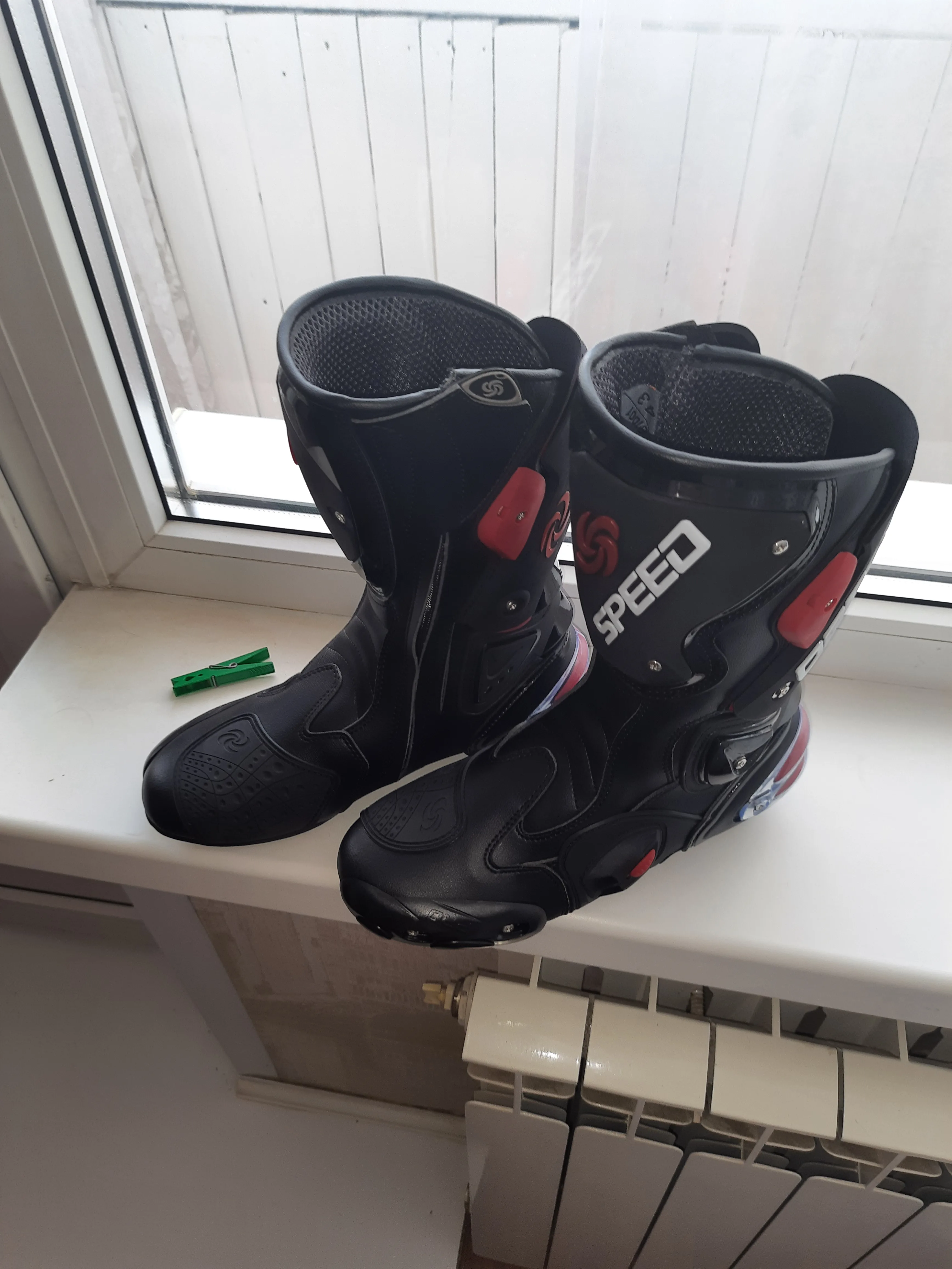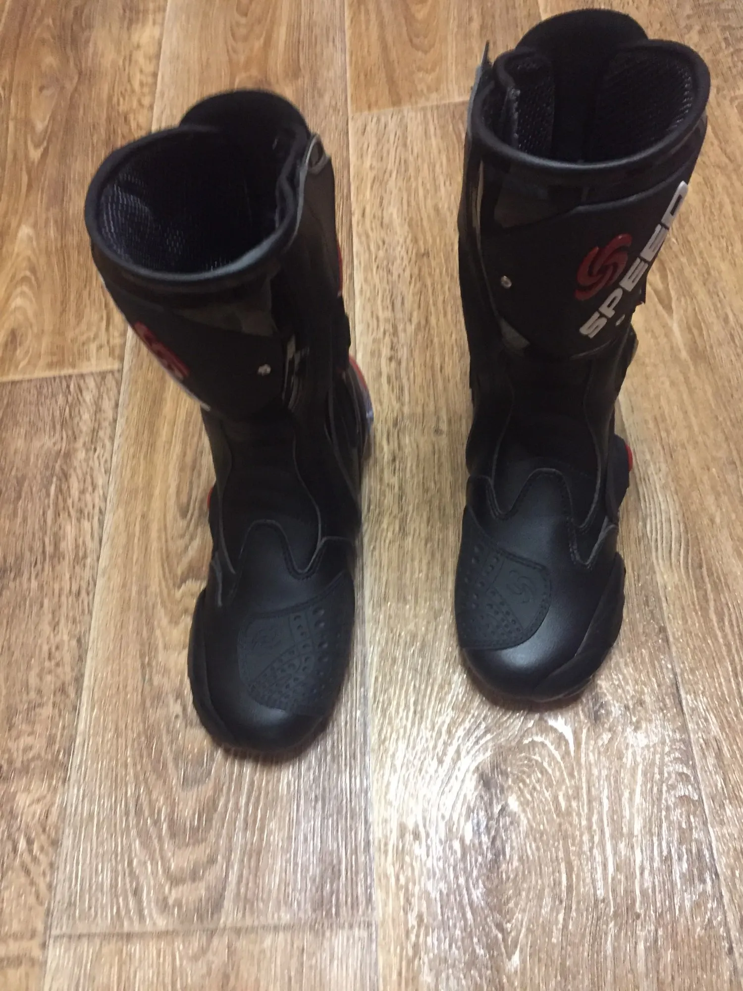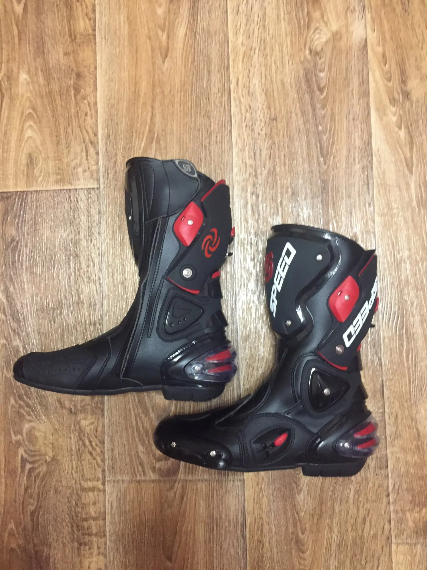 пришли в Москву за 15 дней, качество защиты среднее(пластмасс не огонь) сами ботинки из кожзама приблизительно 2,5мм, ошибся с размером, подложу стельки. Купил за 6450 у нас такие от 10000, катать в городе пойдёт, не для трека.