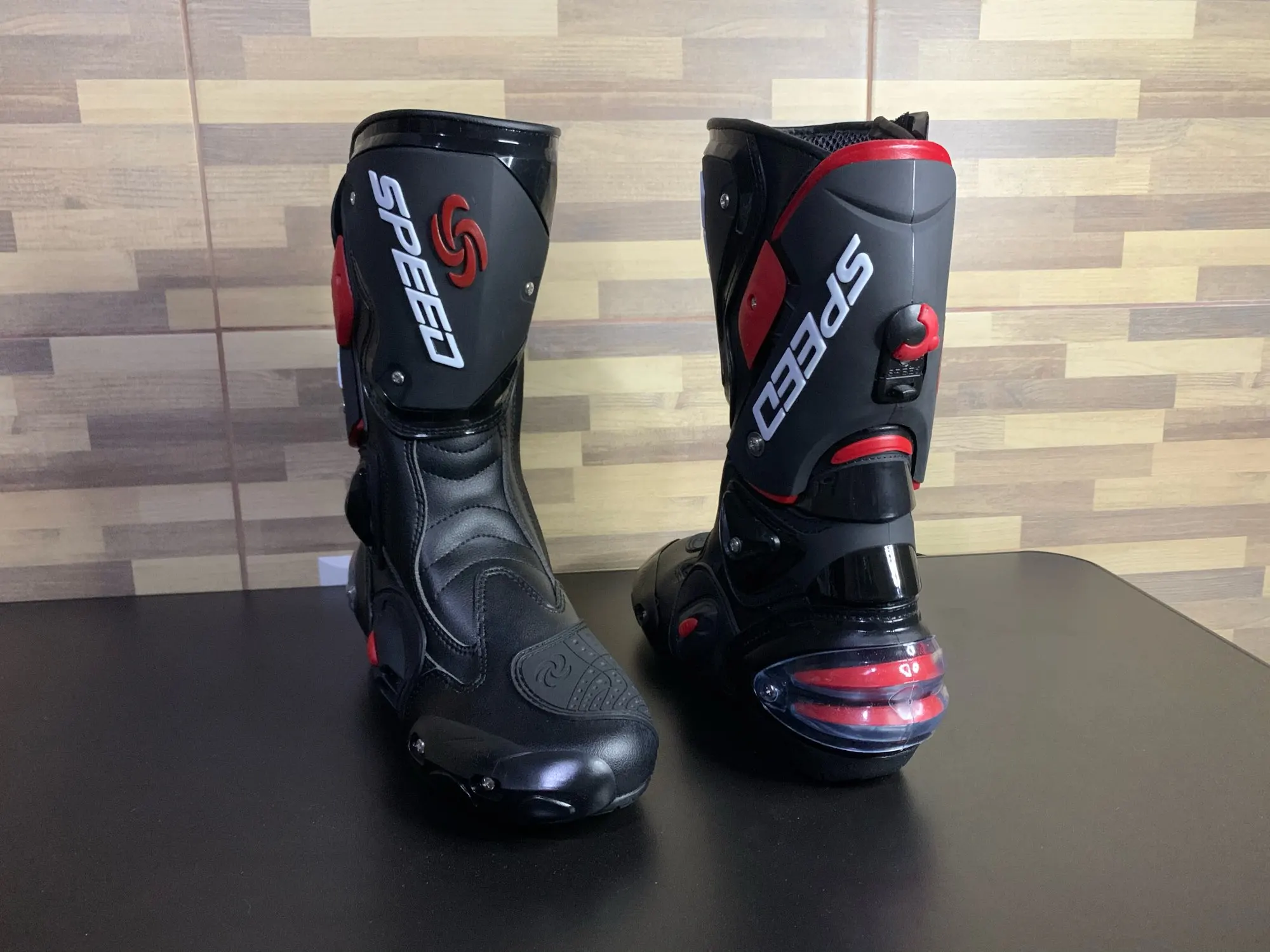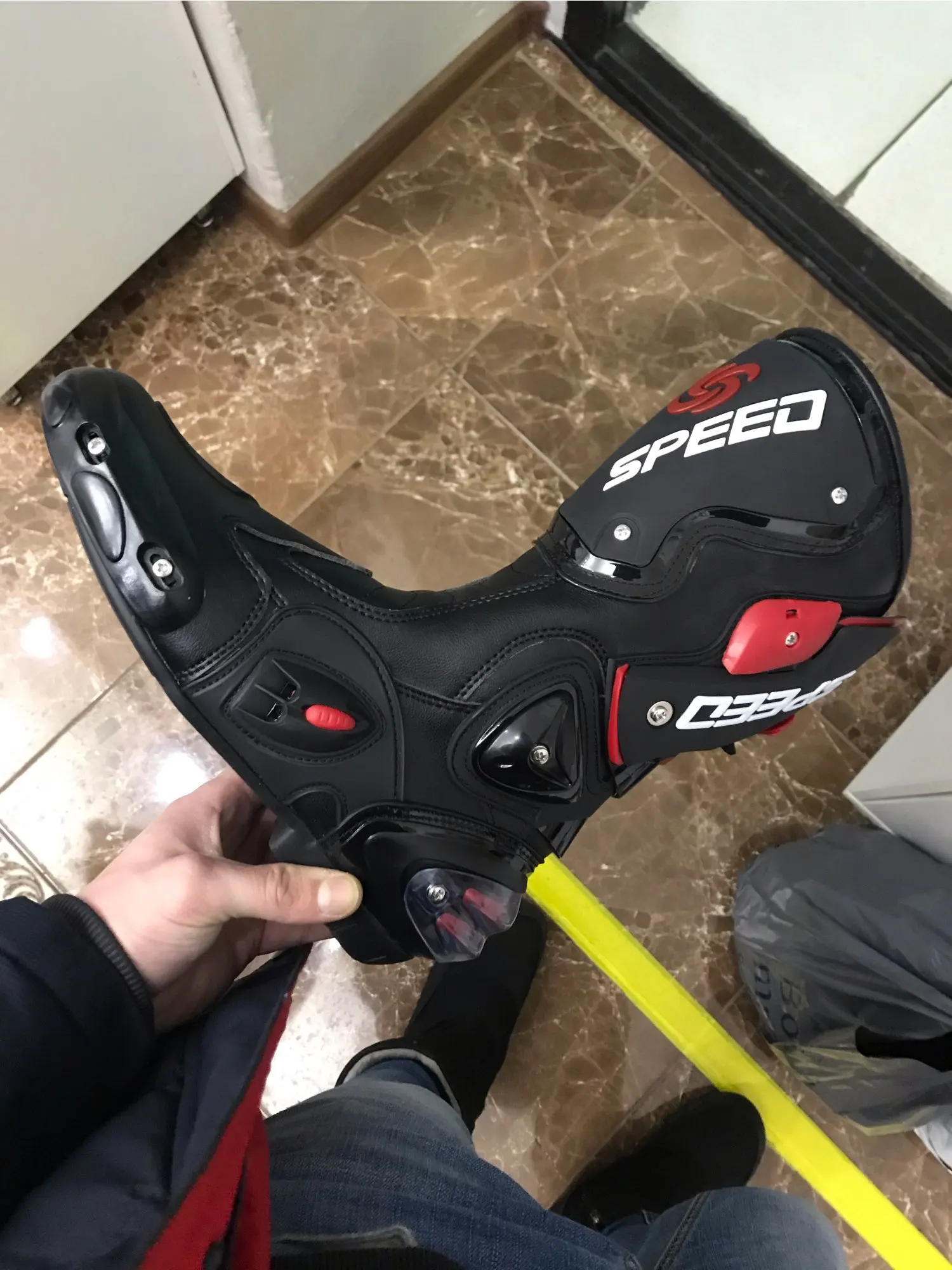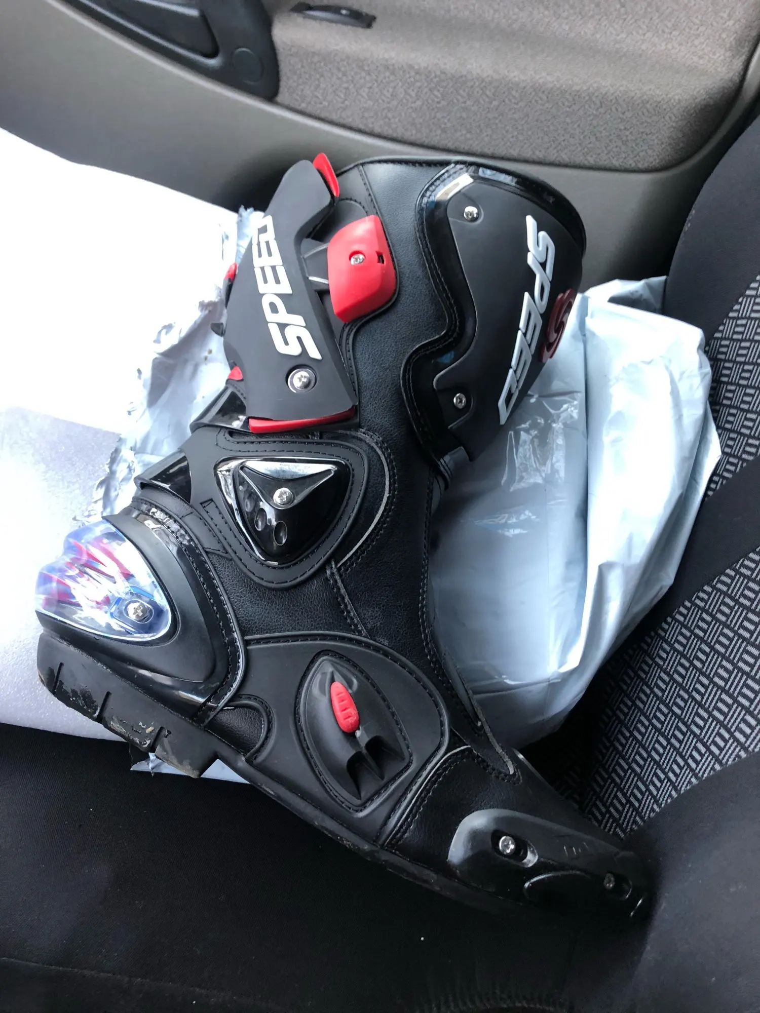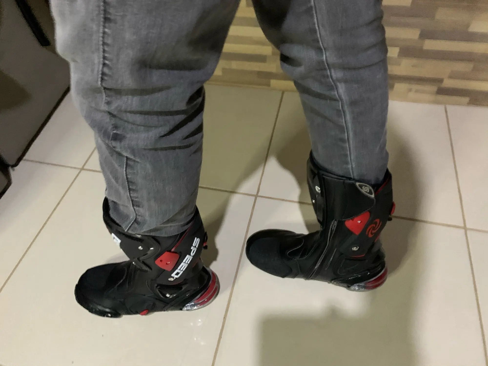пришли в Москву за 15 дней, качество защиты среднее(пластмасс не огонь) сами ботинки из кожзама приблизительно 2,5мм, ошибся с размером, подложу стельки. Купил за 6450 у нас такие от 10000, катать в городе пойдёт, не для трека.