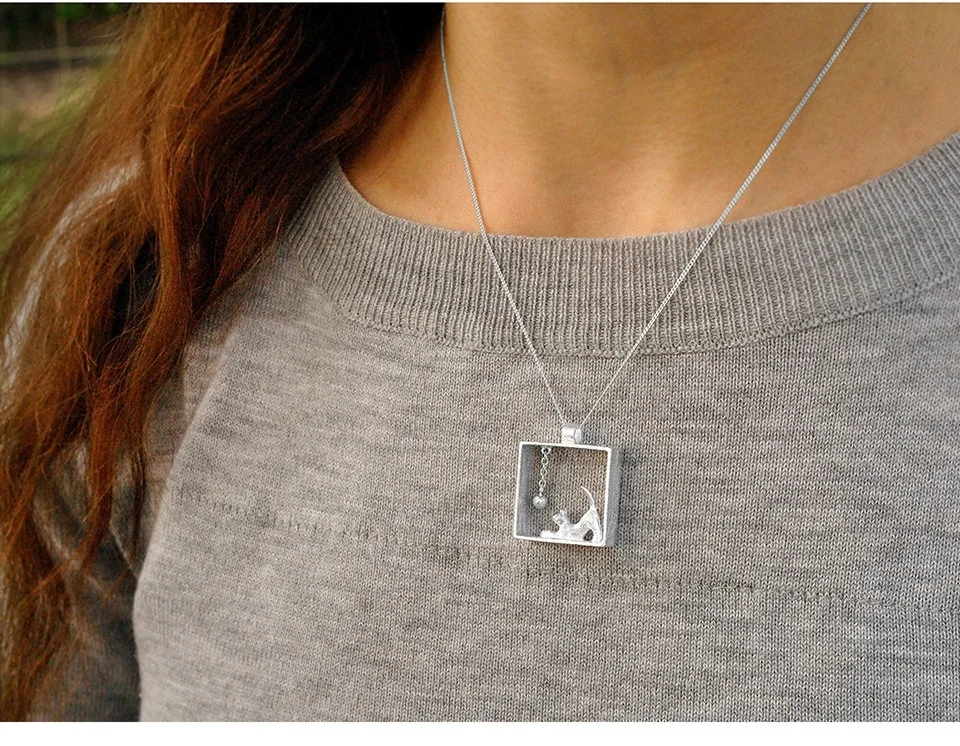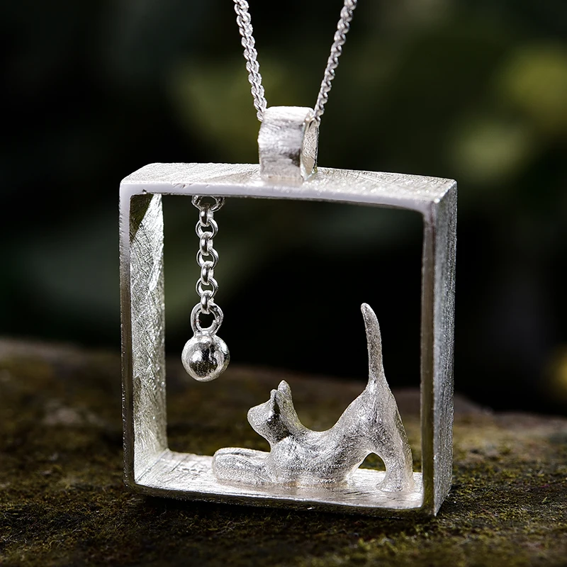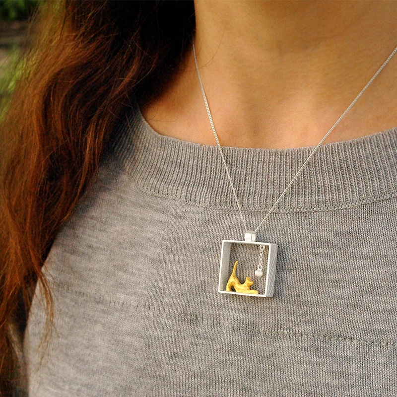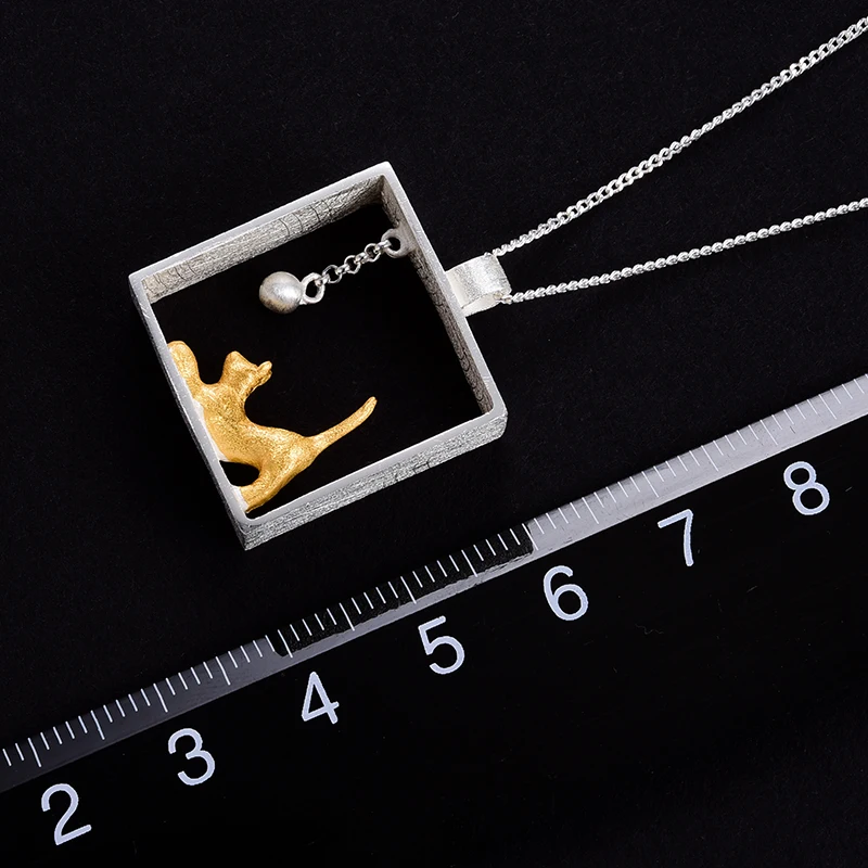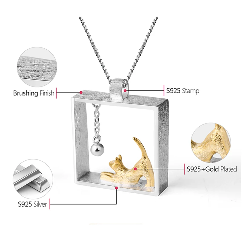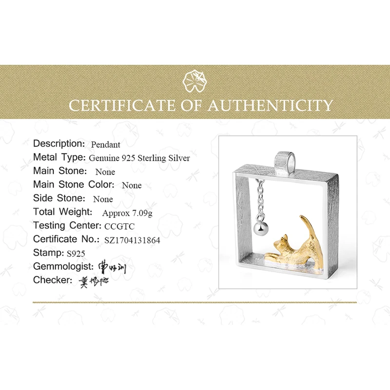 Женский кулон Кот играющий Lotus Fun, изящное ювелирное изделие из настоящего серебра 925 пробы, 18 К золото, без ожерелья