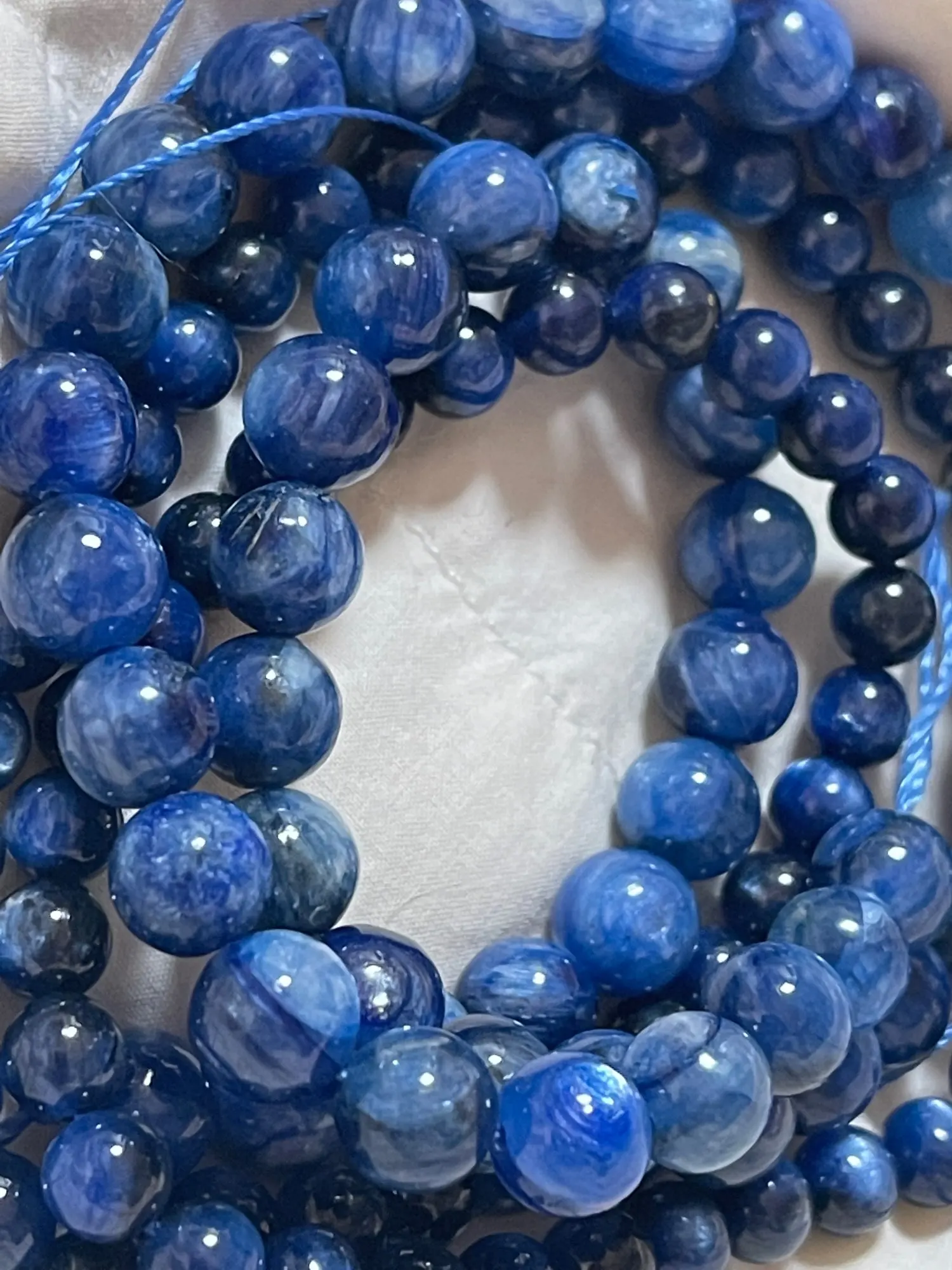 Круглые Бусины Из Натурального синего кианита для изготовления ювелирных изделий, нитка 15 дюймов, незакрепленные бусины для браслета, ожерелья, 4 мм, 6 мм, 8 мм, 10 мм, 12 мм