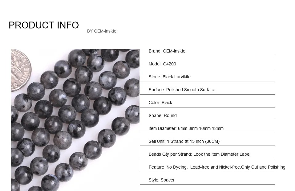 Страна: IT Color: Black Larvikite Item Diameter: 8mm (about 47pcs) Доставка: Standard Shipping 29.08.2022
