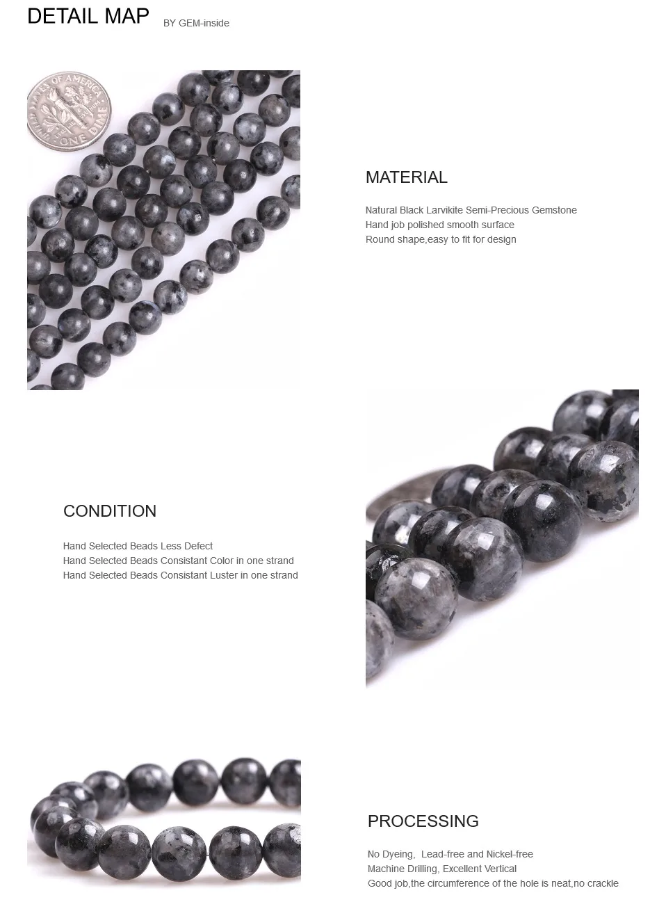 Круглые бусины из натурального камня черного ларвикита для изготовления ювелирных изделий, нитка 15 ", DIY браслет, ожерелье, ювелирное изделие, бисер 6 мм 8 мм 10 мм 12 мм
