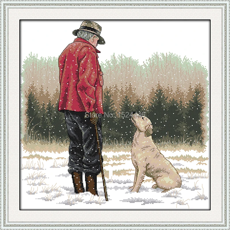 Набор для вышивки крестом DMC 14CT 11CT, с изображением пожилого человека и его собаки, наборы для рукоделия, зимний Снежный пейзаж, домашний декор