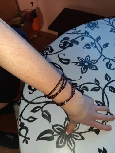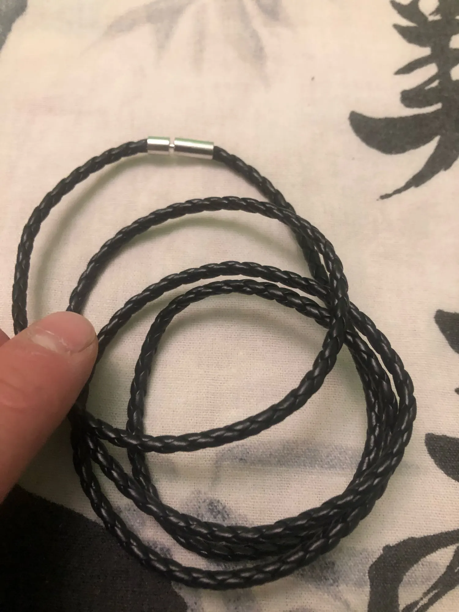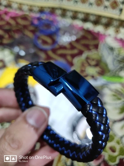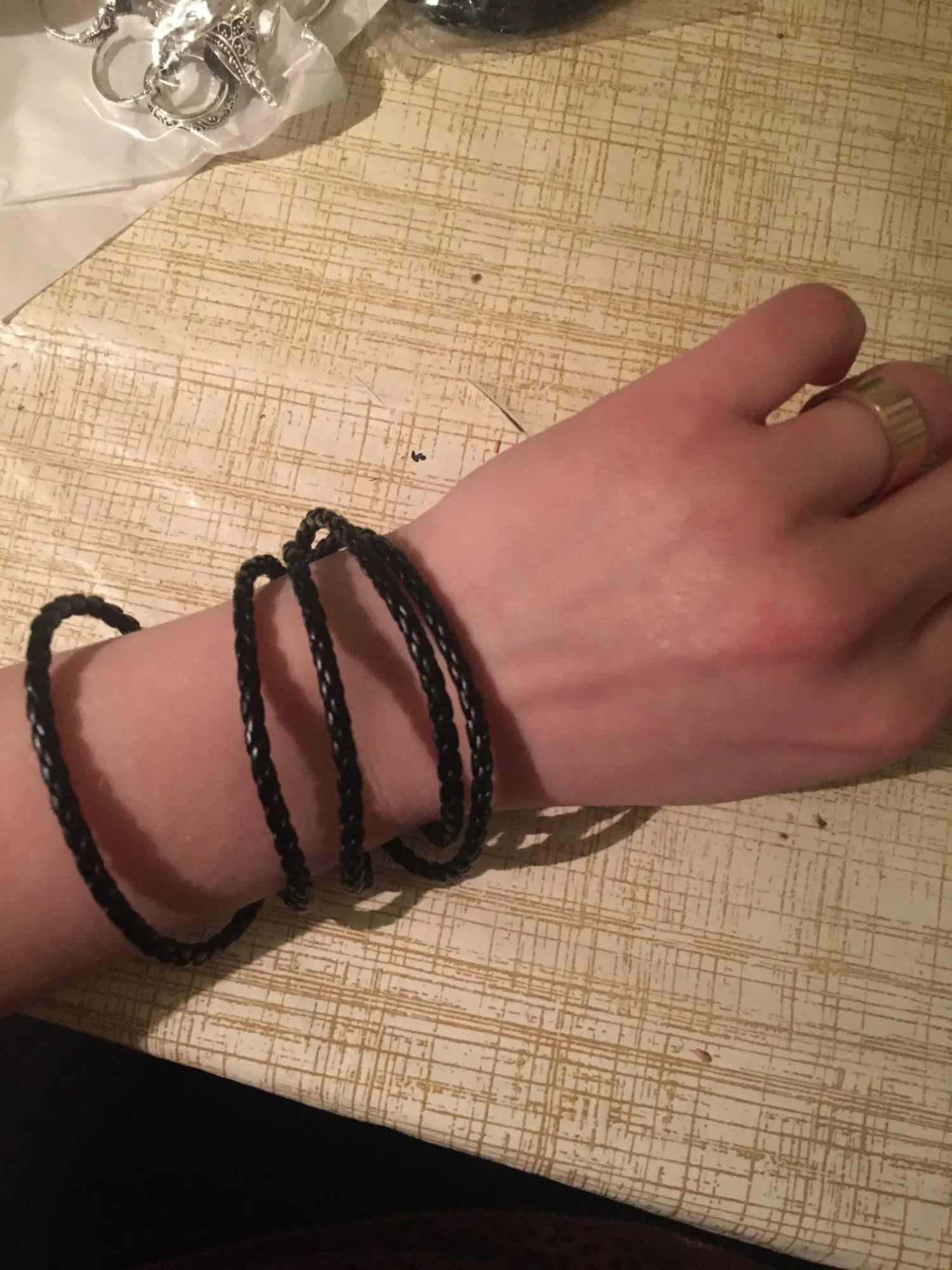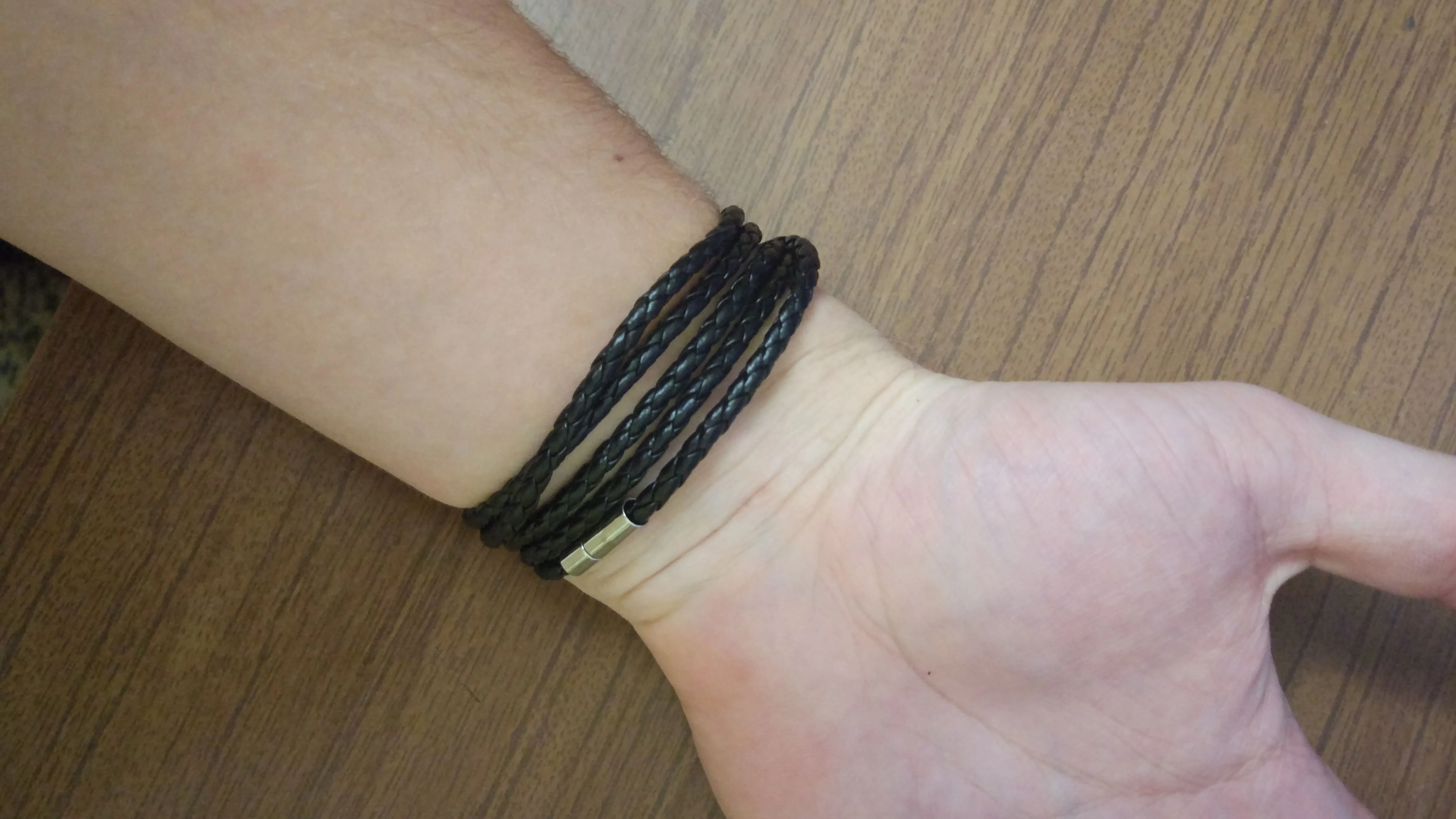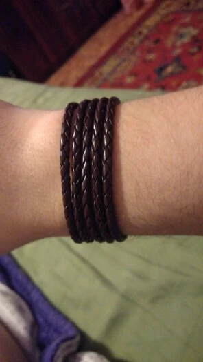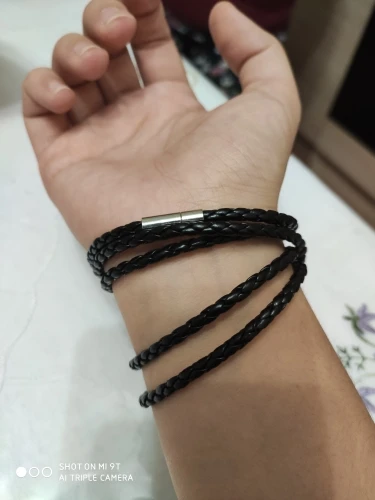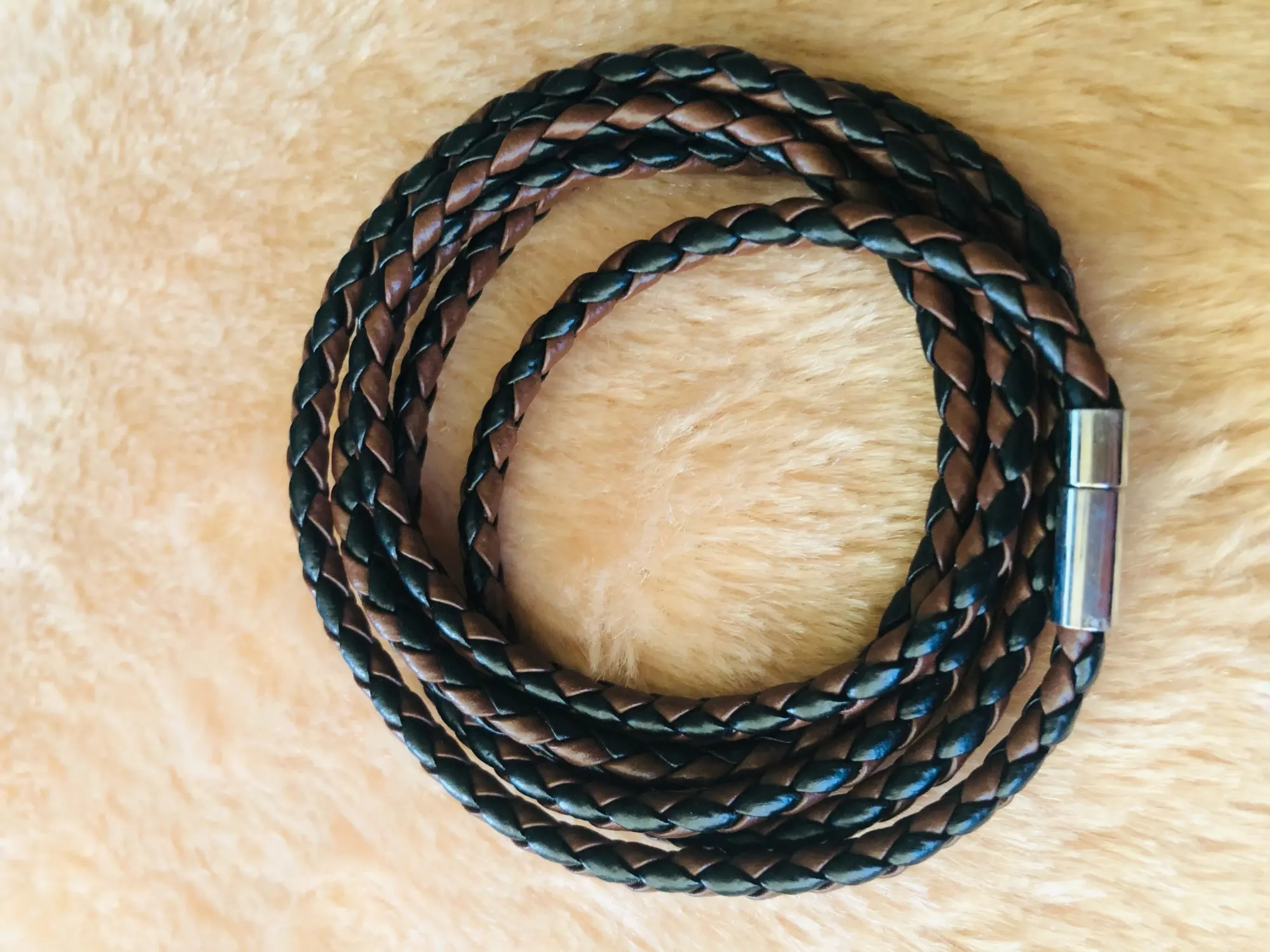 Обычный кожаный браслет. Покупала своим мальчишкам-внукам. Доставка больше месяца. Качество нормальное. Огибается несколько раз вокруг руки. Магнитная застёжка.