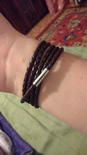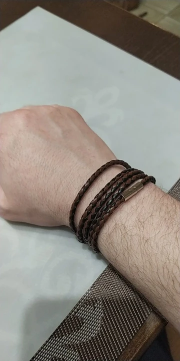 Косичка из кожи, на мужскую руку как на фото не садится, маловат, а четыре слоя большеват, да и слои расходятся. Застежка хорошая. Ехал очень-очень долго, уже не ждали даже.