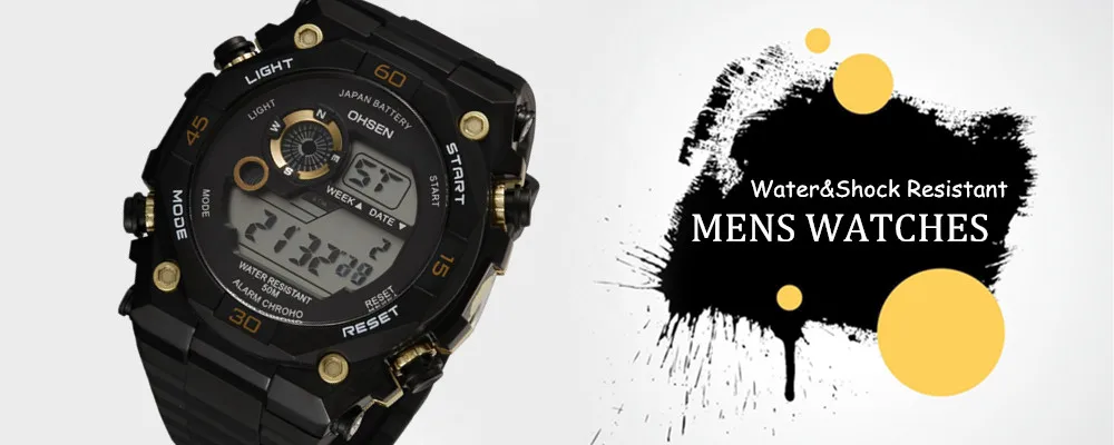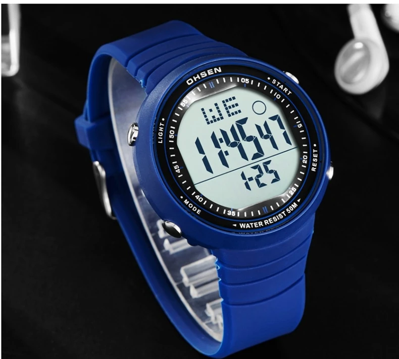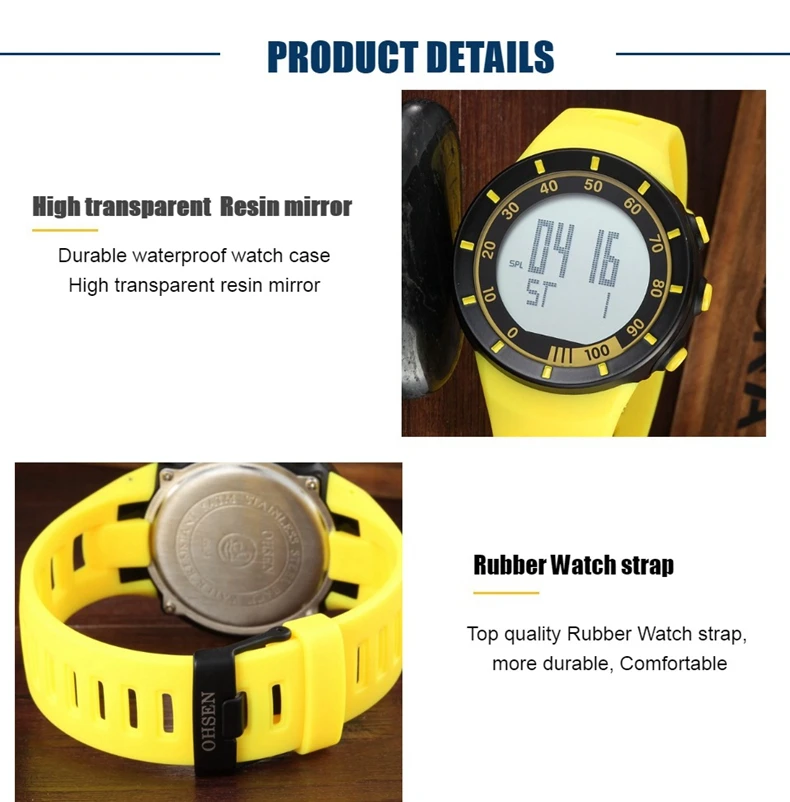 Бренд OHSEN, цифровые часы с ЖК-дисплеем для мужчин и женщин, спортивные часы для активного отдыха, водонепроницаемость 50 м, модные желтые наручные часы с резиновым ремешком, подарки