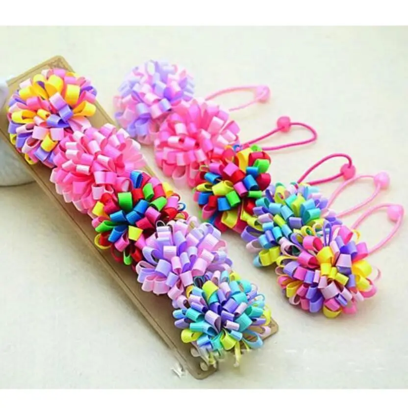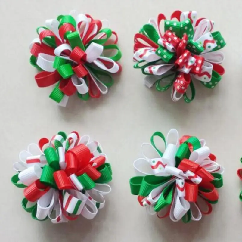Рождественские цветочные шарики, яркая лента, Детские Рождественские шпильки для волос для девочек, эластичные повязки для волос, повязки на голову, 100 шт. HD3236