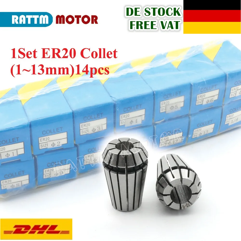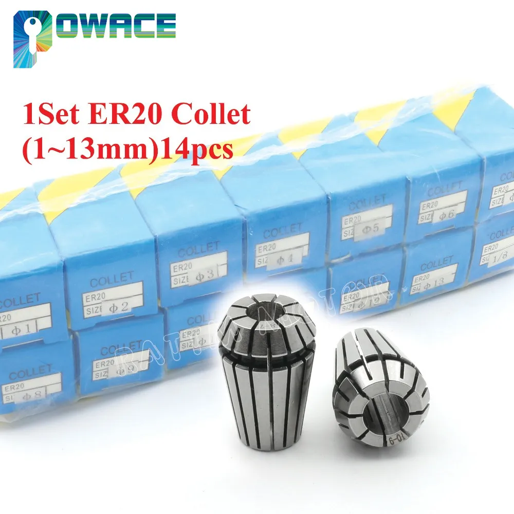 Полный Комплект цанг ER20 (1-13 мм) 14 шт., Цанга 0,1 мм, Прецизионная пружинная Цанга для фрезерного токарного станка с ЧПУ