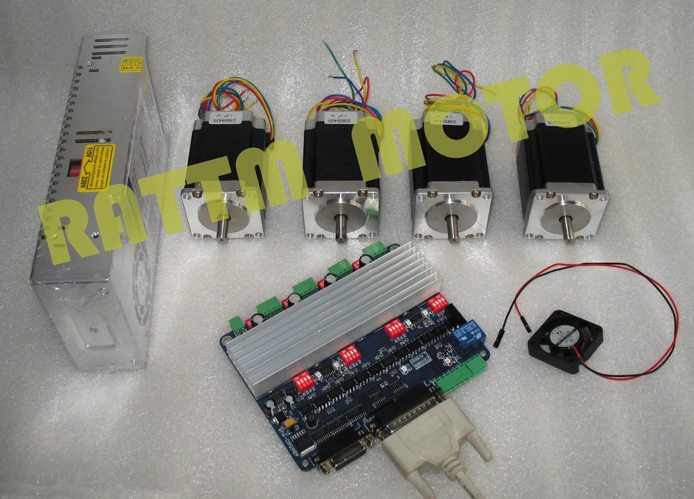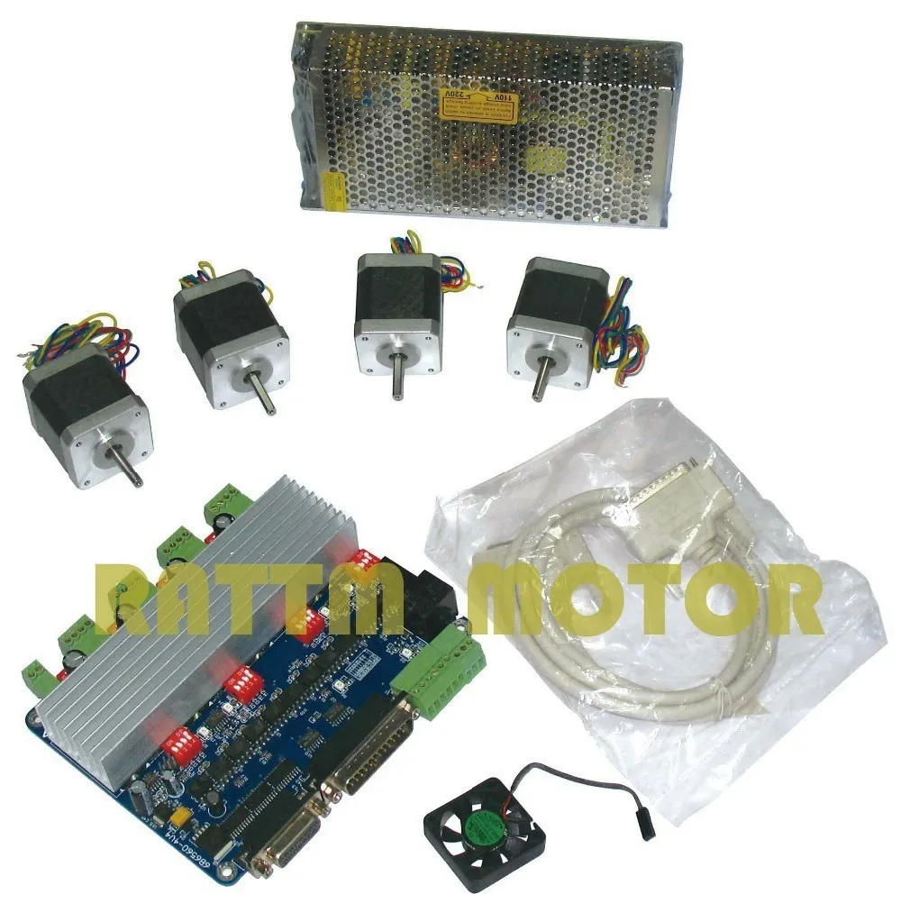 4x17HS8401 шаговый двигатель(48 мм длина, 1.8A,78Oz-in) 1x4 оси TB6560 шаговый двигатель драйвер платы H тип 1 x 145W24V импульсный источник питания Параллельный кабель DB25-1 шт. 1 x вентилятор, 4 шт. винт M4 Руководство пользователя на английском и китайском языках для 3 оси драйвер платы будет отправить по электронной почте