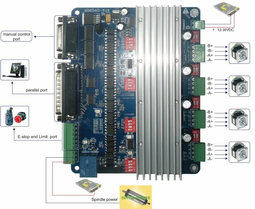 4 оси плата контроллера ЧПУ TB6560 Драйвер шагового двигателя доска для ЧПУ мельница: