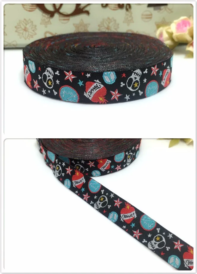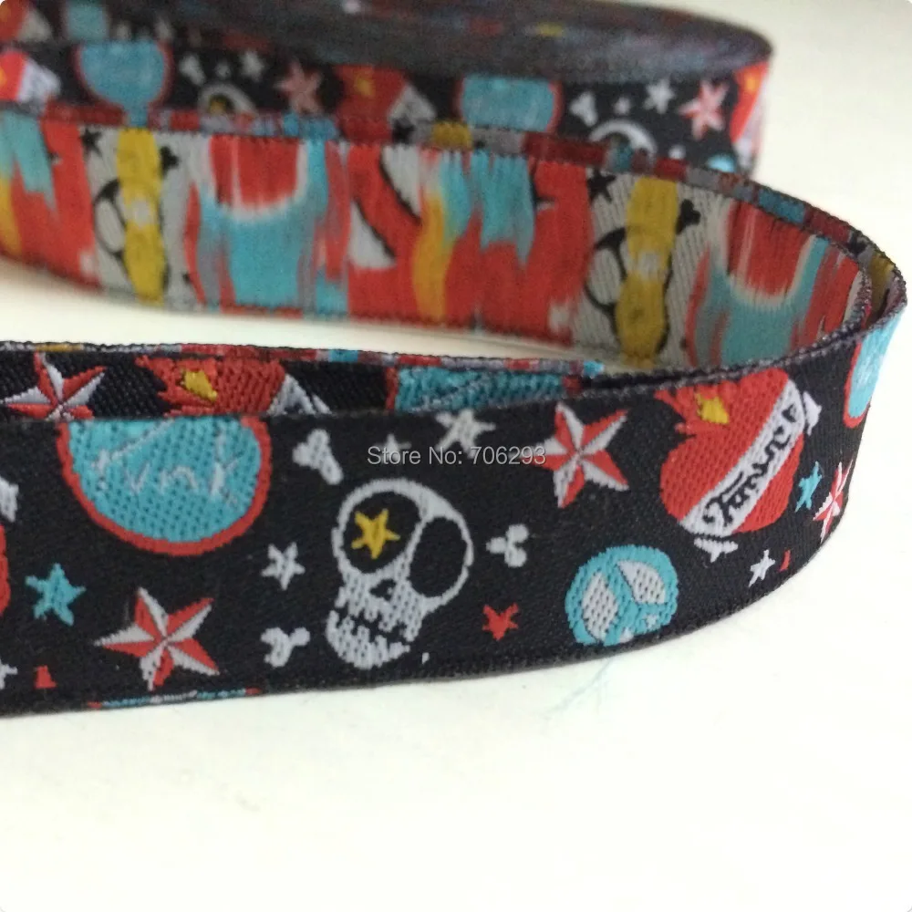 Новинка 2014, 58 дюйма, 16 мм, ширина 10 ярдовкомплект, татуировка черепом, черный тон, плетеная жаккардовая лента для собачьего ошейника, KTZD201120601