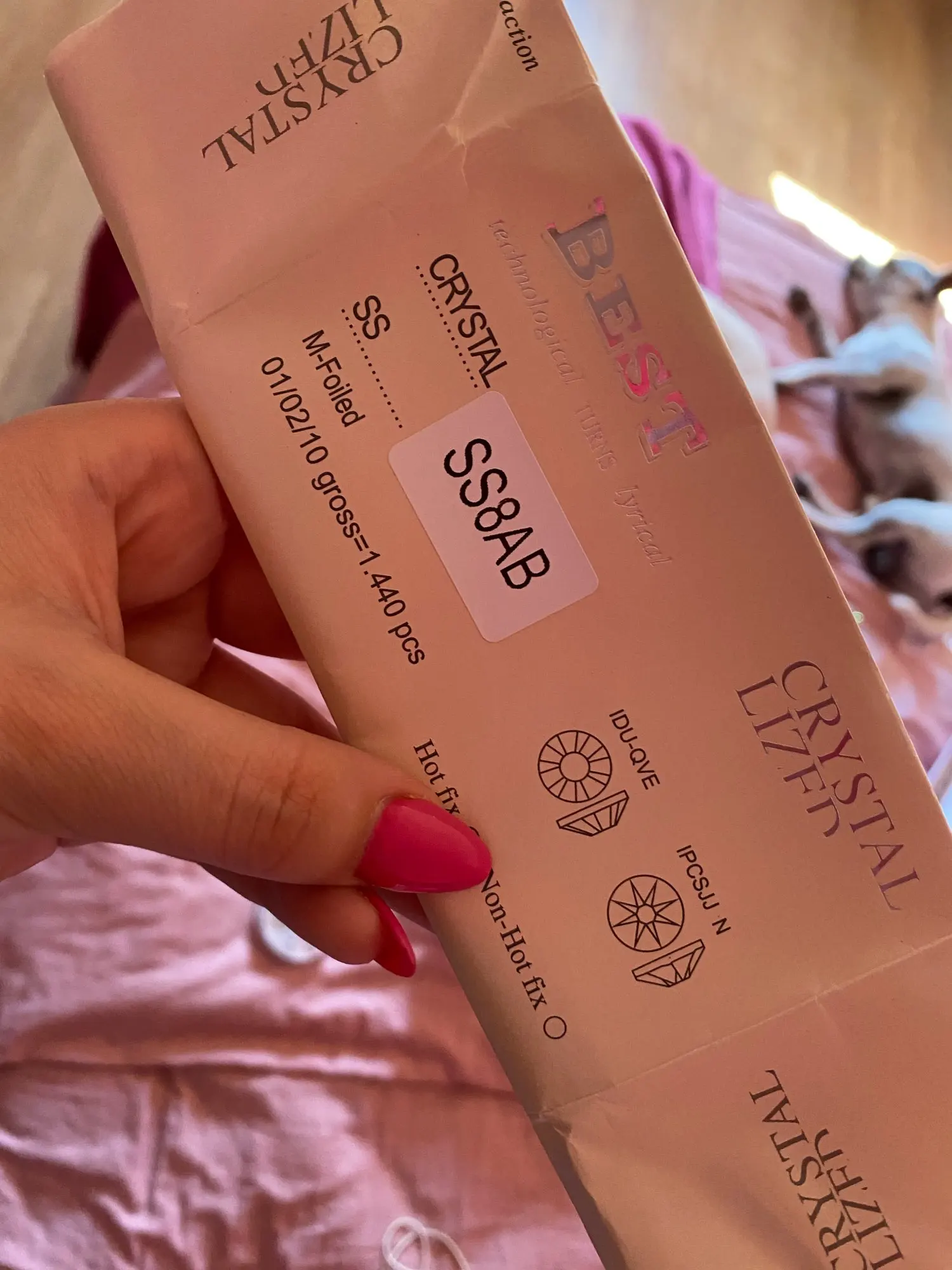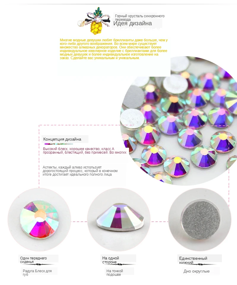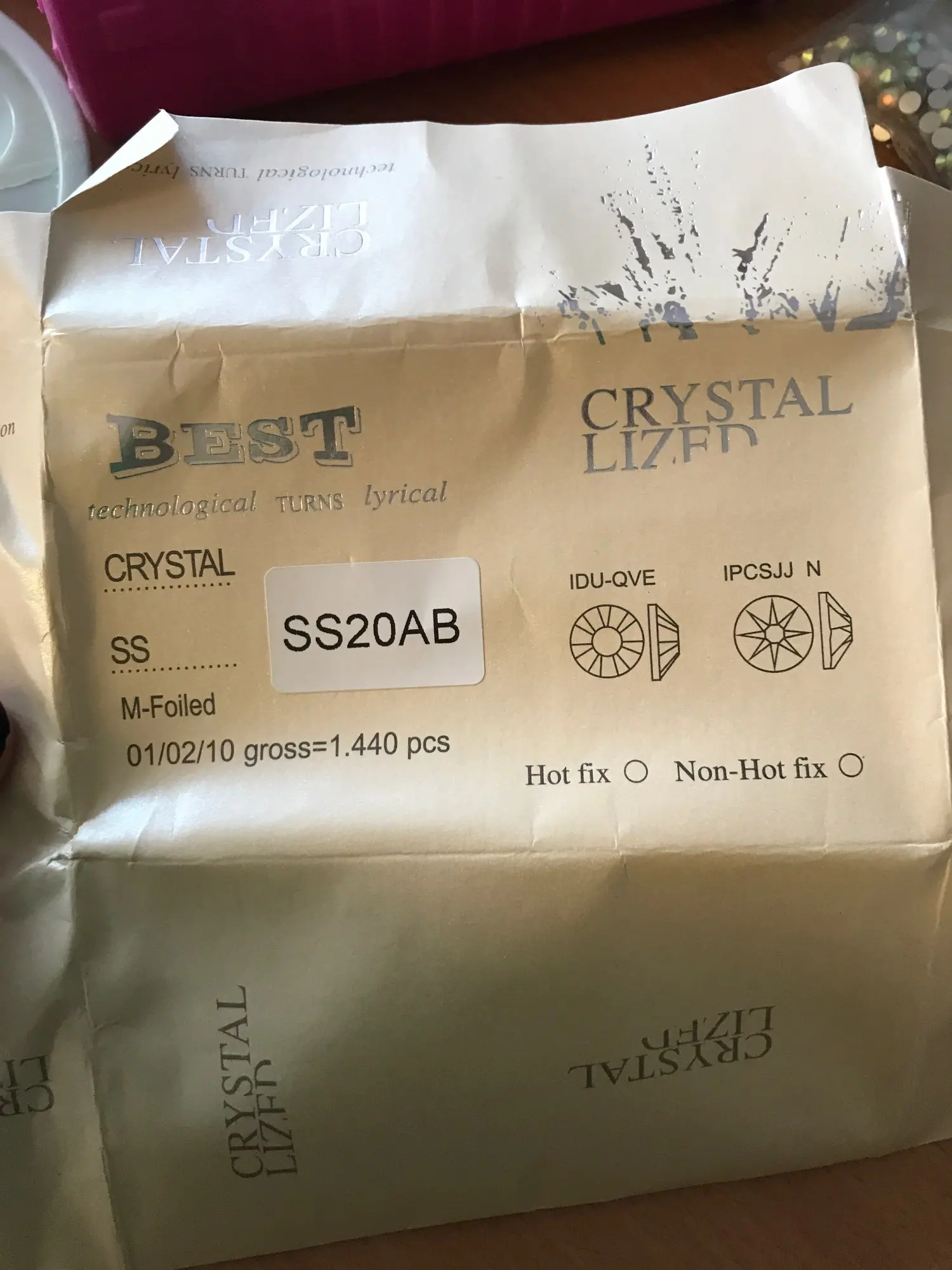 Все здорово, но кристалл АВ в разных наборах имеют немного разный оттенок. Доставка месяц. Оттенок рэинбоу в коробочке, что очень удобно. Стразы очень достойные, конечно не Сваровски и Прициоза, но для Китая отличные.