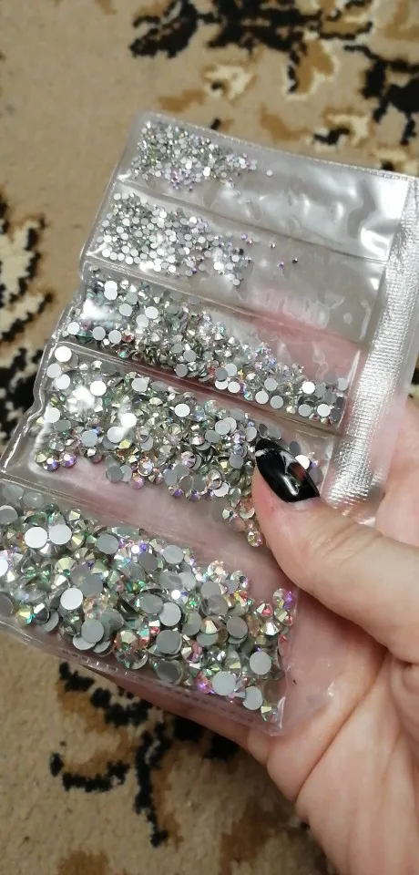 Потрясающие стекляные стразы! Взяла на пробу прочитав отзывы, выбрала самый маленький размер, так как шью кукольную одежду и все равнно пригодятся. Оказались потрясающими, блестят, све ровные, идеальные я бы даже сказала. Уже заказала большой набор разных по размеру, подклеить на костюм для фигурного катания. Костюм покупали Sagester аж за 14т, а стразы там 100% совпадают.