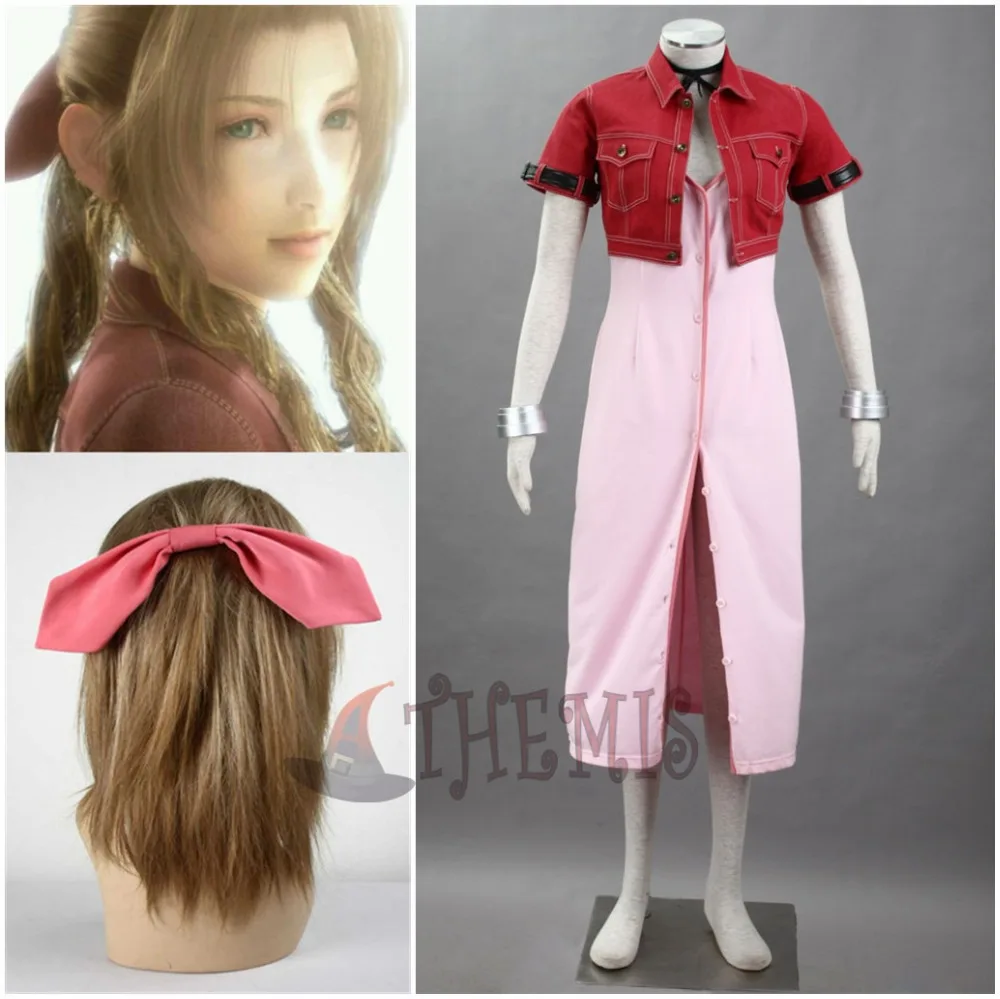 Athemis аниме Final Fantasy Aerith красный костюм косплей костюм аксессуары для волос браслет на заказ размер